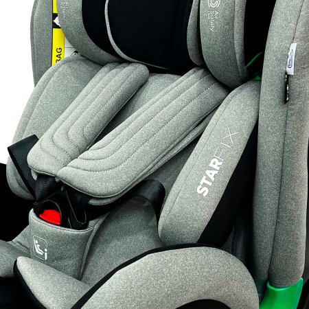 STAR FIX autostolen er godkendt i henhold til i-size forordningen og har et 360º roterende sæde, der gør brugen nemmere og mere behagelig, og som kan tilpasses barnets vækst på en naturlig måde. I takt med at barnet vokser, drejes det hurtigt og nemt i kørselsretning takket være dets 360º roterende system.