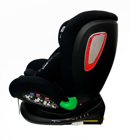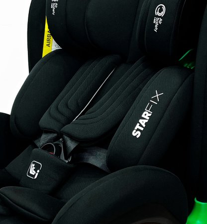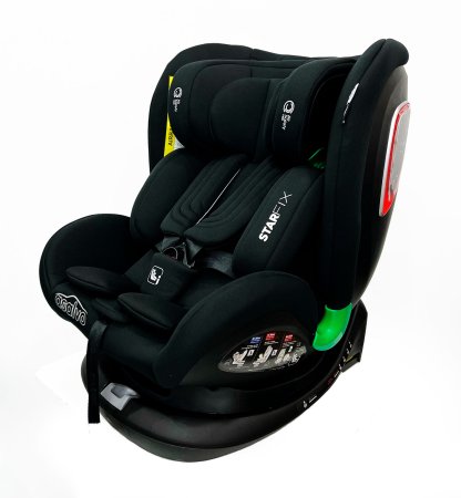 STAR FIX autostolen er godkendt i henhold til i-size forordningen og har et 360º roterende sæde, der gør brugen nemmere og mere behagelig, og som kan tilpasses barnets vækst på en naturlig måde. I takt med at barnet vokser, drejes det hurtigt og nemt i kørselsretning takket være dets 360º roterende system.