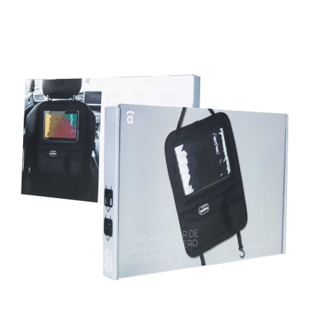 Her får du en smart opbevaringslomme/seat organizer med Integreret og aftagelig tabletholder til bil bagsædet.