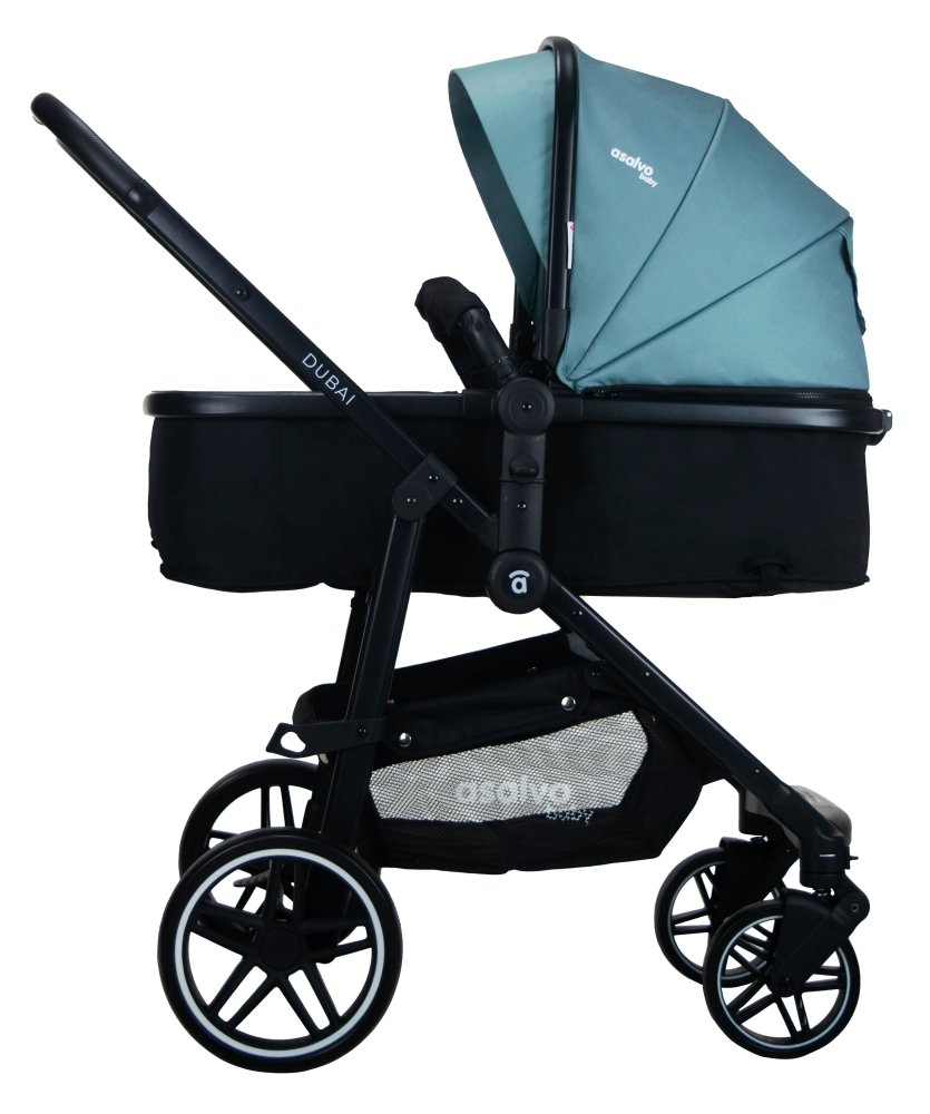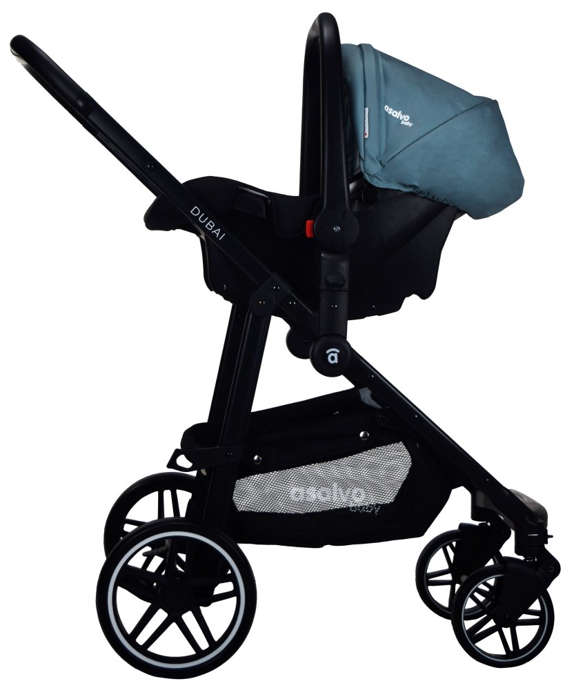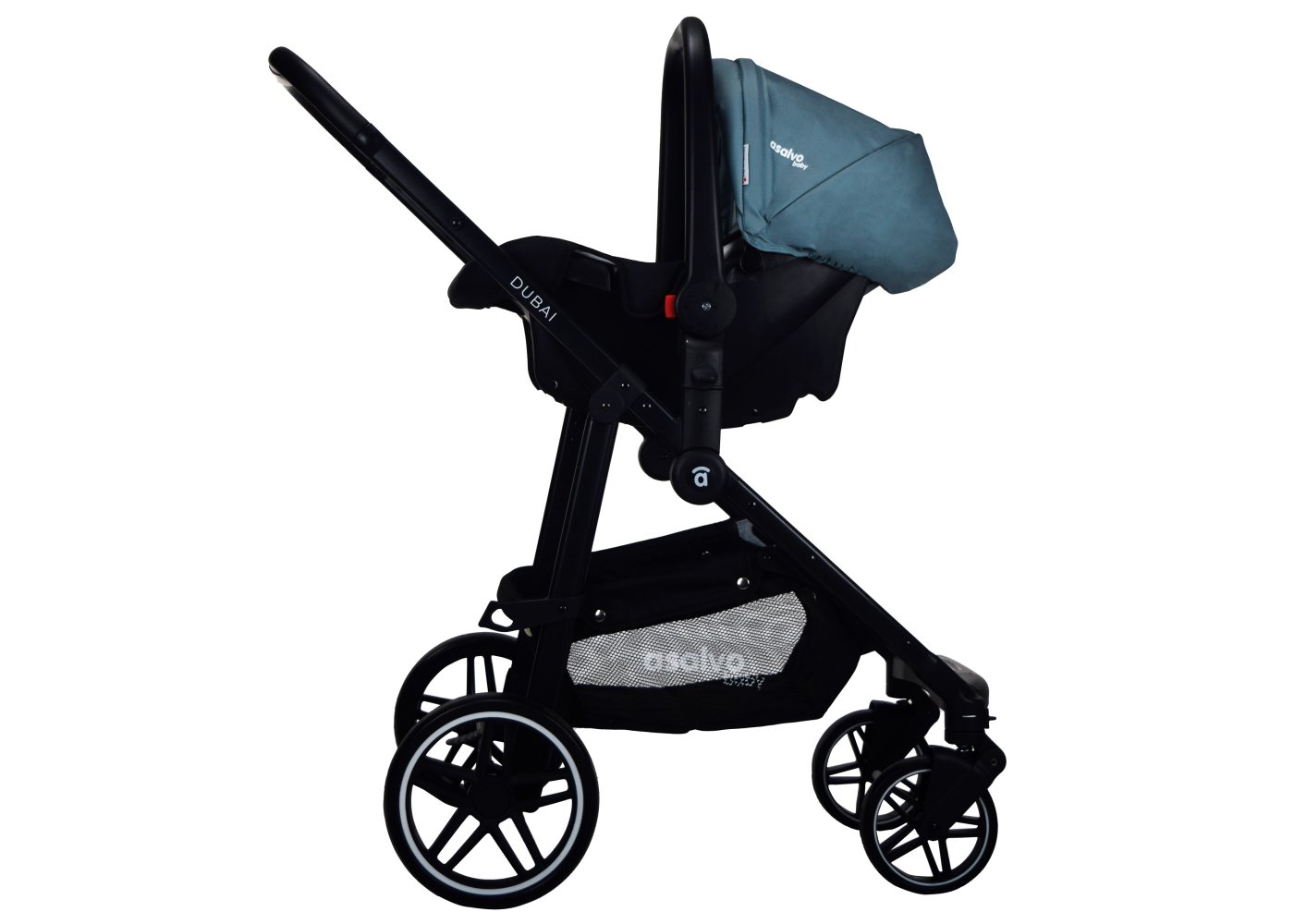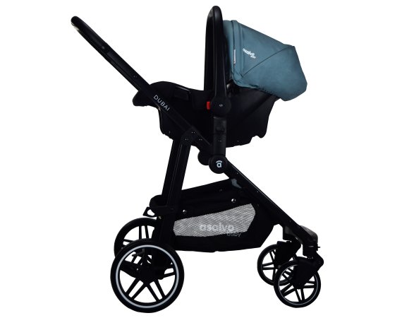 Skønt barneudstyrssæt bestående af en autostol Gruppe 0, et aluminiumsstel og et klapvognssæde der omdannes til barnevognslift i ét trin.