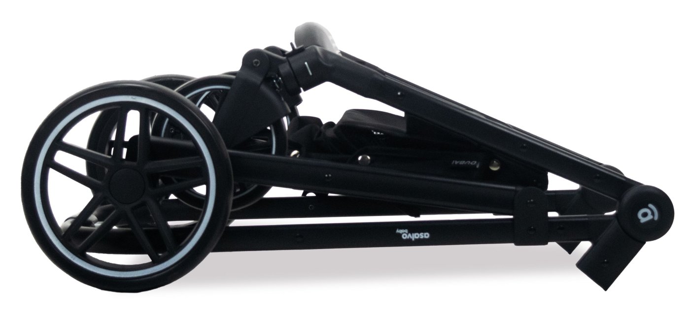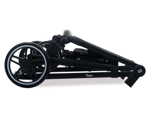 Klapvognen har drejelige, lås bare hjul med fjederophæng på alle hjul. Den har en sikkerhedslås til bedre transport og opbevaring.