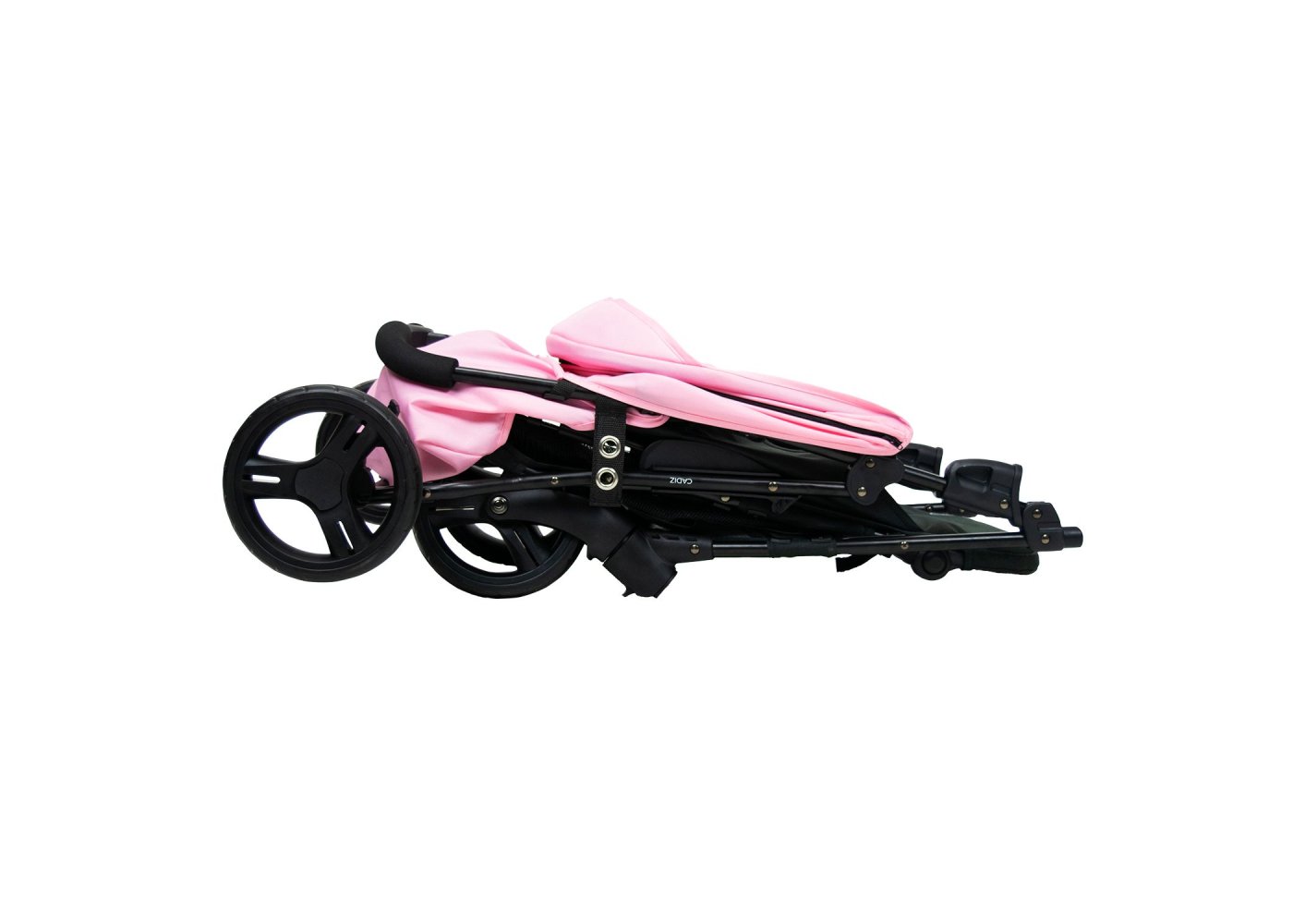 Klapvognens ryglæn kan lægges ned i fem forskellige positioner, og en justerbar fodstøtte, der giver god komfort på turen.