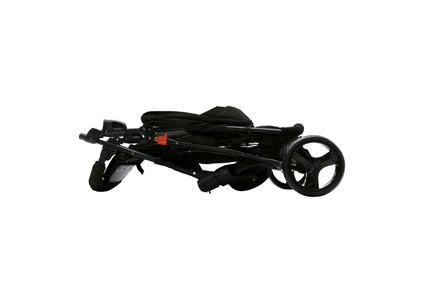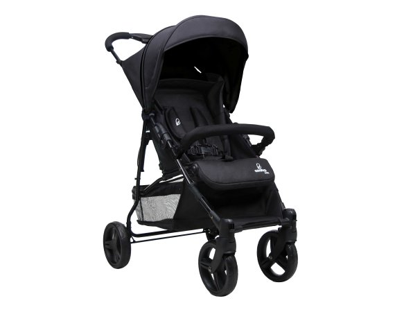 Asalvo Cadiz Klapvogn med stålramme har fast-drejelige forhjul, en kaleche med ekstra skygge og et praktisk håndtag med trykknap, der gør sammenfoldningen let. Alle hjulene kan afmonteres, hvilket gør den nem at opbevare på grund af dens kompakte størrelse.