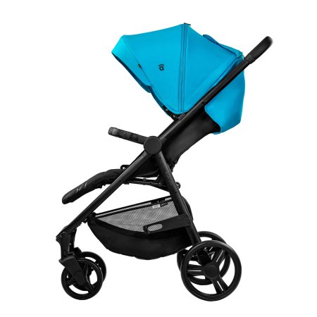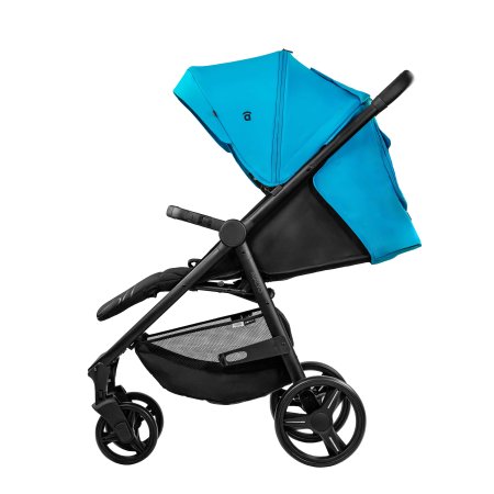 Sikkerheden er i top med bagbremse, en 5-punktssele med skulderpuder, selebeskyttere, sikkerhedslås og et lukket håndtag.