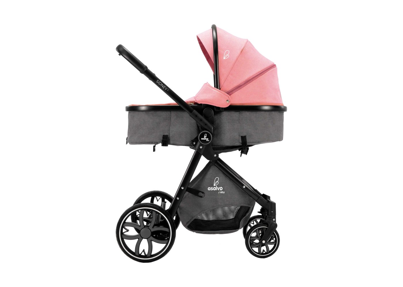 Asalvo Sidney 2 Convertible, med en aluminiumsramme, er et sæt bestående af en klapvogn med et justerbart klapvognssæde, der nemt kan ændres til en barnevognslift samt en fodpose - alt i ét!