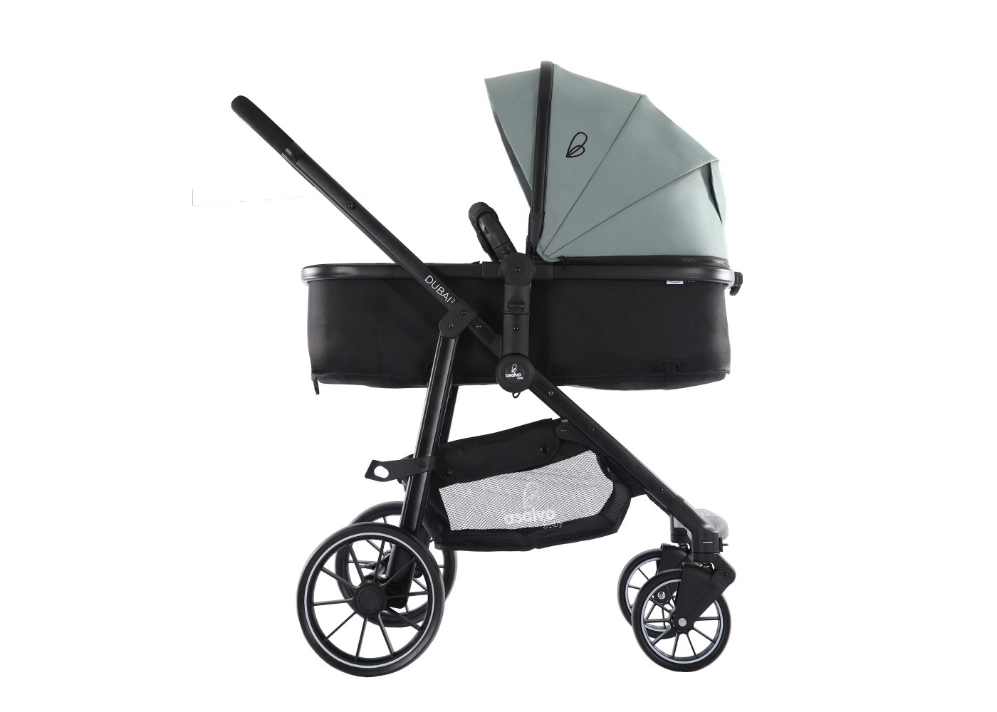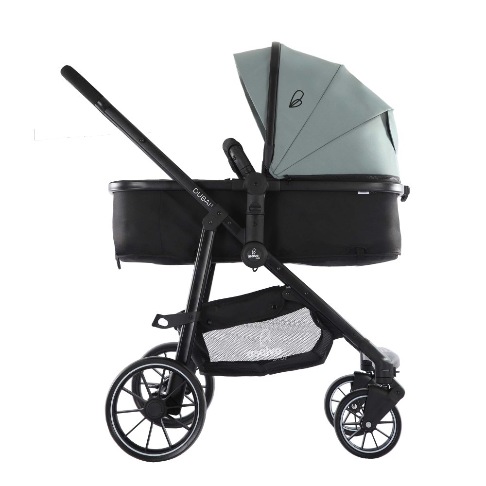 Asalvo Convertibe Dubai 2 med aluminiumsstel er et sæt, der inkluderer en autostol i Gruppe 0+ samt en klapvogn med et justerbart klapvognssæde, der kan omdannes til en barnevognslift og en fodpose - alt sammen i én pakke!