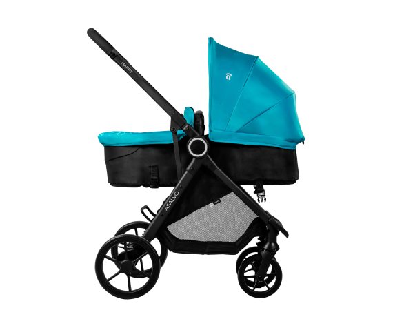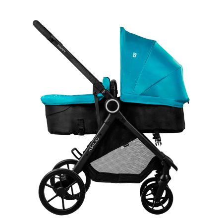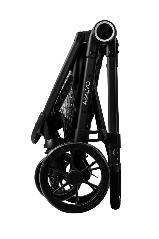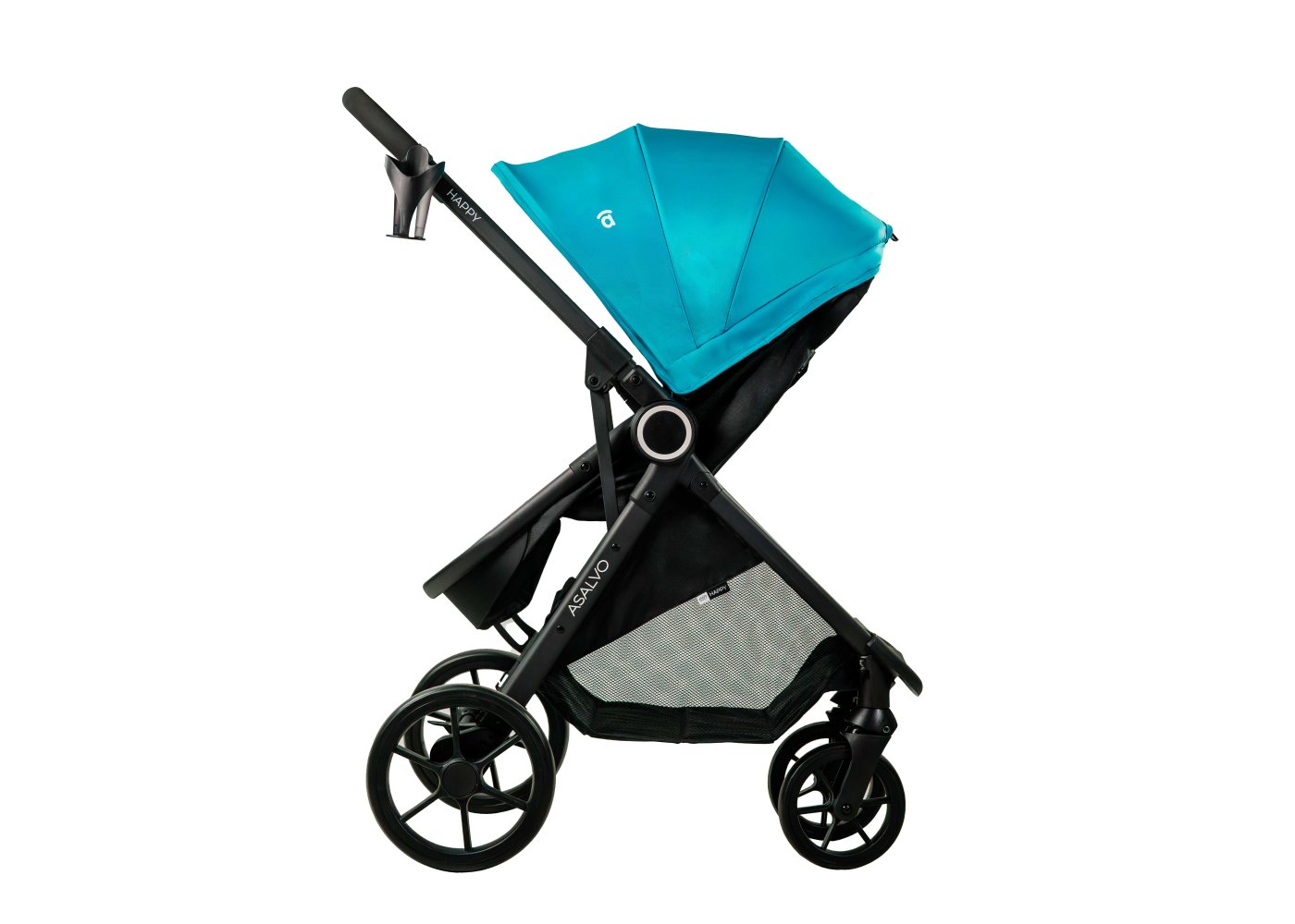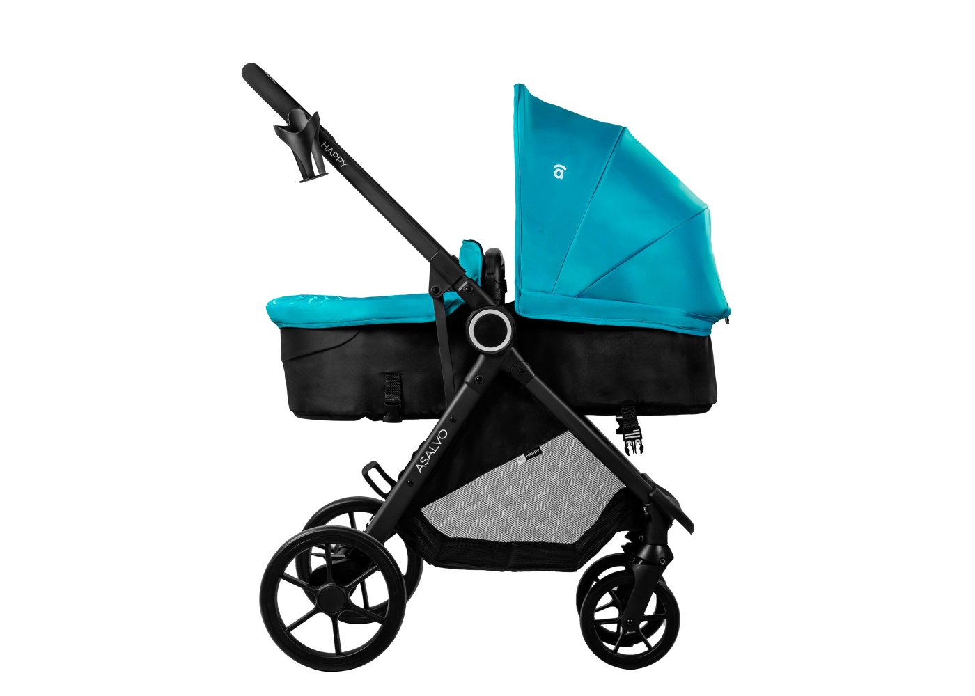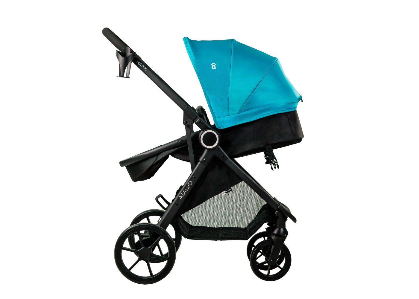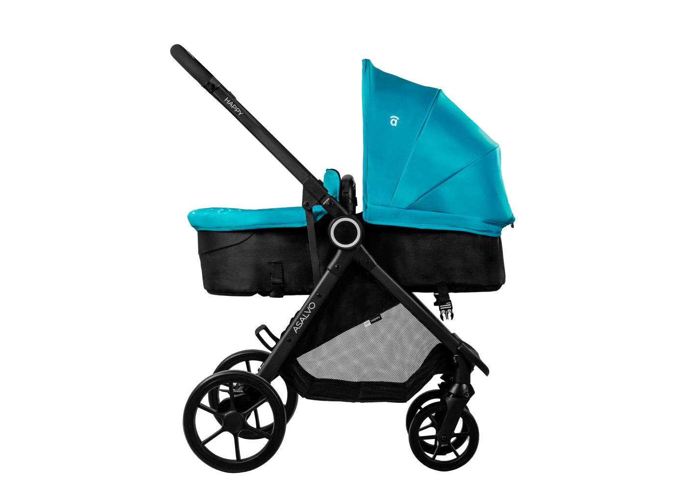 Asalvo Convertible Happy med stålstel er et praktisk sæt bestående af en klapvogn, som nemt kan ændres til en barnevognslift samt en autostol Gruppe 0.
