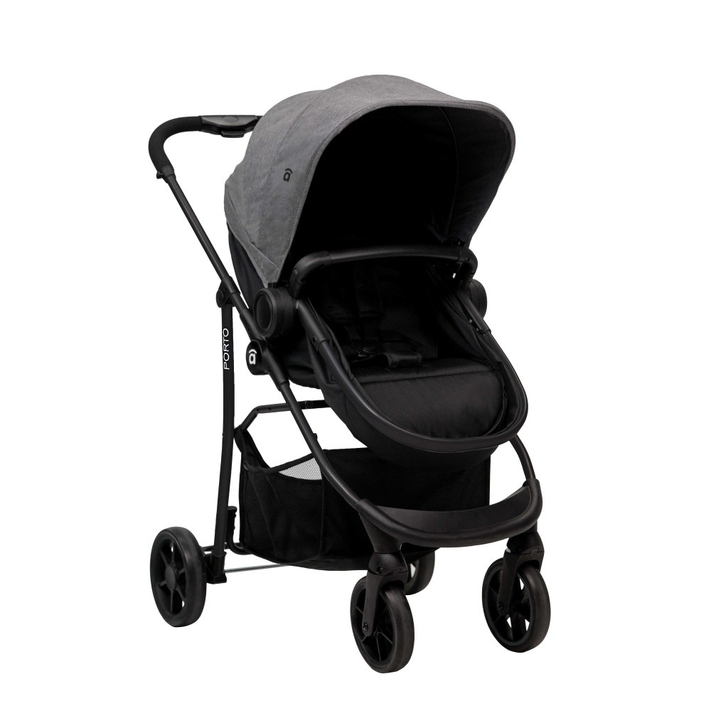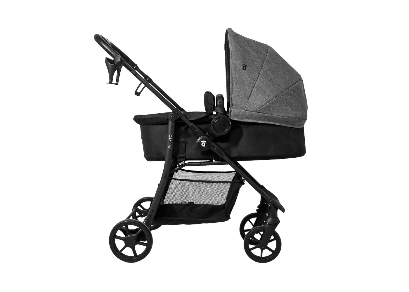 Asalvo Convertible Porto med stålstel er et sæt, der omfatter en autostol i Gruppe 0, en alsidig klapvogn med et klapvognssæde, som let kan konverteres til en barnevognslift, samt en fodpose. Alt er samlet i denne praktiske pakke.