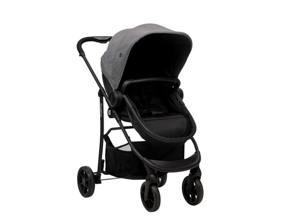 Indeholder stel, klapvognssæde der kan konverteres til barnevognslift, fodpose og autostol i Gruppe 0+ (op til 85 cm) med bærehåndtag
