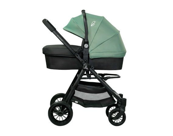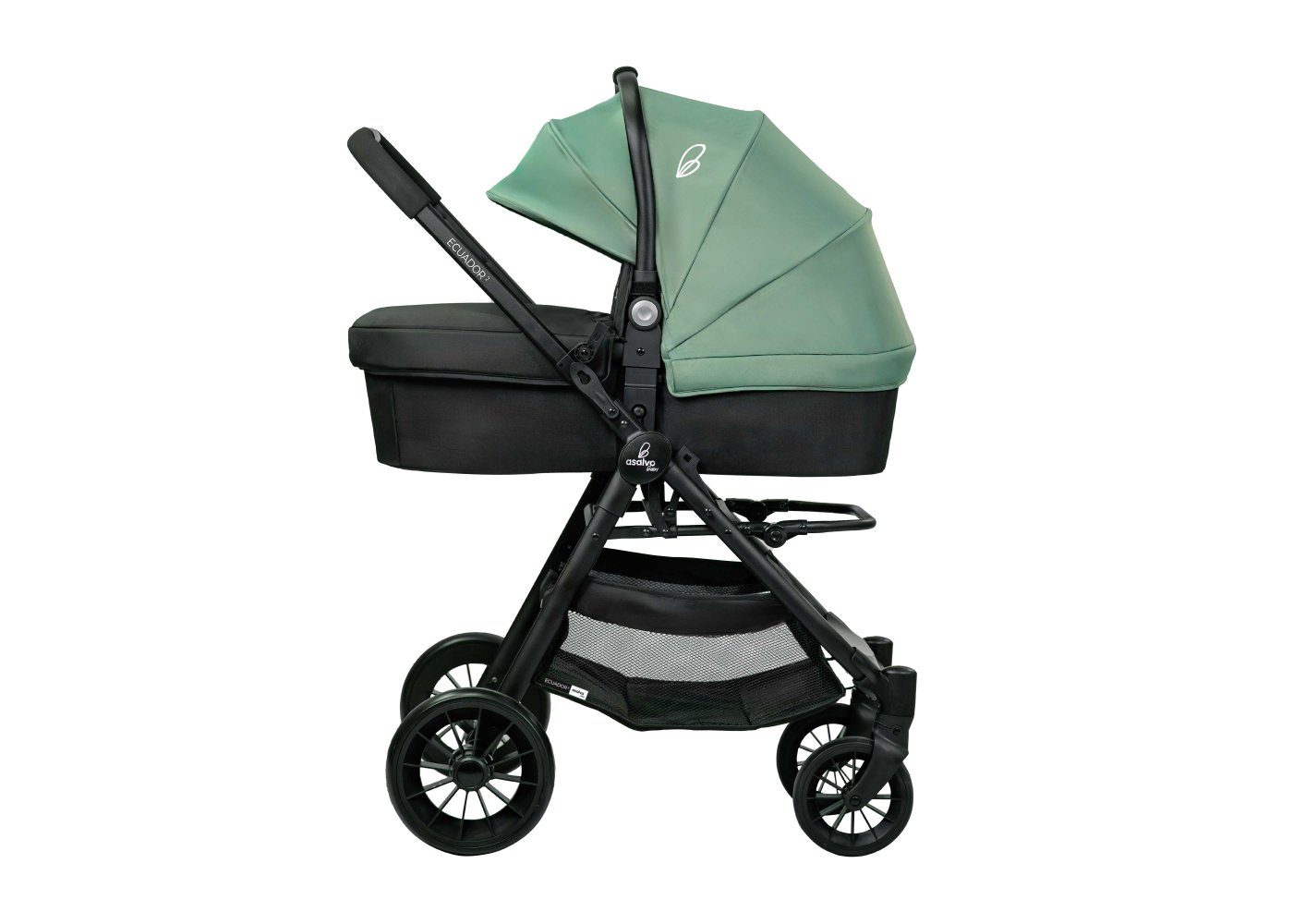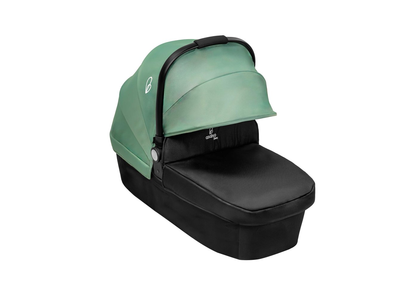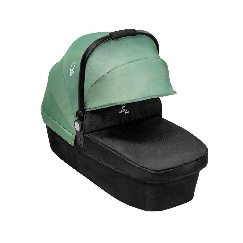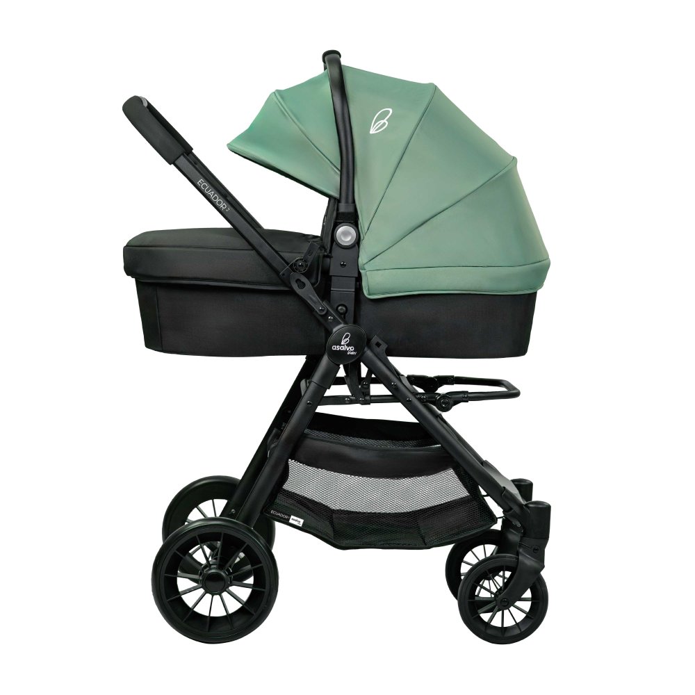Asalvo Trio Ecuador 2 er et komplet sæt bestående af en klapvogn, en barnevognslift med en 3 cm tyk madras og en autostol i gruppe 0+, til montering på stålstellet.