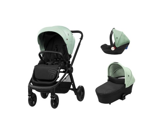 Det skønne sæt består af en klapvogn, en barnevognslift med en 3 cm tyk madras, en I-size gruppe 0+ autostol og en praktisk pusletaske.