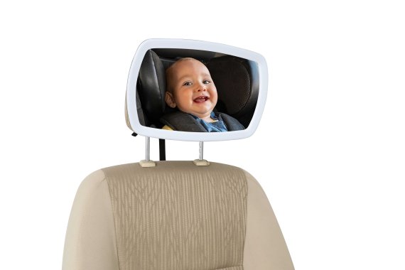 Asalvo spejl med LED lys er designet med justerbare stropper for enkel installation.