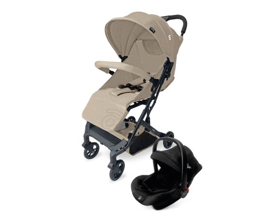 En letvægtsklapvogn med tilhørende R129-godkendt autostol til babyer fra 40 til 87 cm.