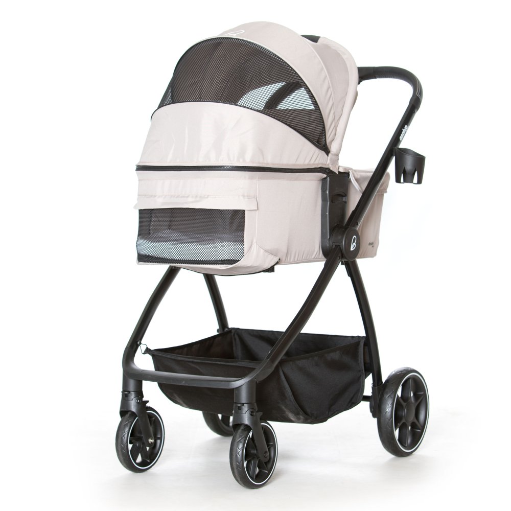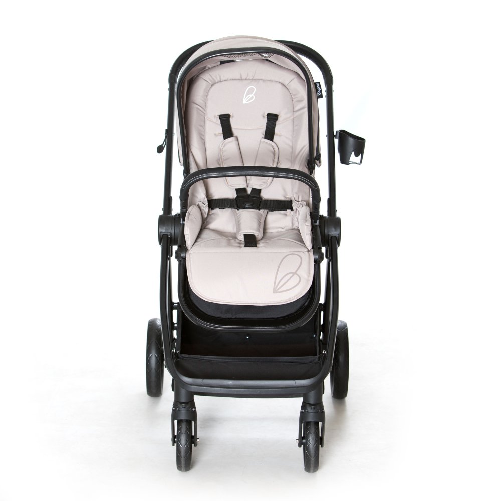 Pakken indeholder stel, barnevognslift og klapvognssæde. Sædet er vendbart, kan foldes sammen og har tre ryglænsindstillinger. Materialerne kan tages af og vaskes. Vognen har firehjulsaffjedring, UV50+ kaleche og en rummelig opbevaringskurv og en foldemekanisme, der gør den nem at pakke sammen.