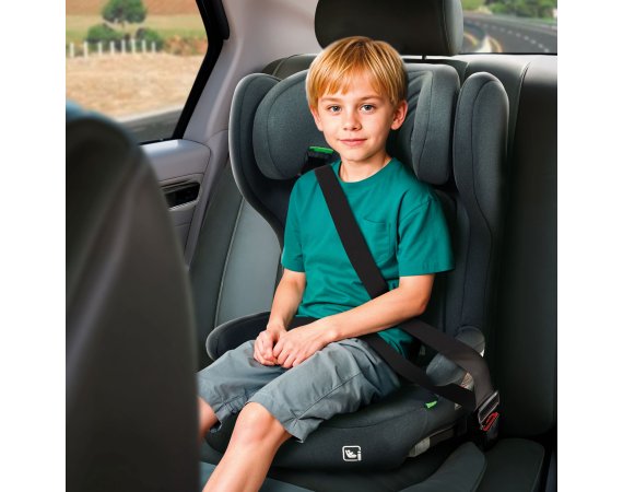 Kan monteres med ISOFIX eller bilens sikkerhedssele. Foldbart design sparer plads, mens højdejusterbar hovedstøtte, polstret sæde og sidebeskyttelse (SIPS) sikrer ultimativ sikkerhed og komfort. Betrækket kan nemt tages af og vaskes.