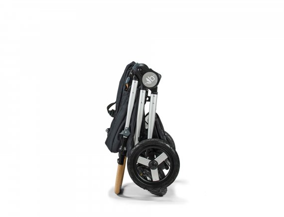 Klapvognen har et let aluminiumsstel og er udstyret med luftfyldte hjul med affjedring.