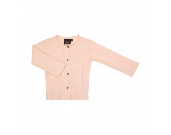 Sød strik cardigan fra Petit by Sofie Schnoor med hulmønster og smarte guldknapper