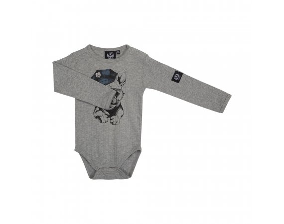 Super sej langærmet body i grå med motiv af politihund fra Petit by Sofie Schnoor