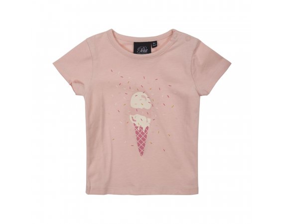 Super sød kortærmet t-shirt i rosa med print af isvaffel fra Petit by Sofie Schnoor