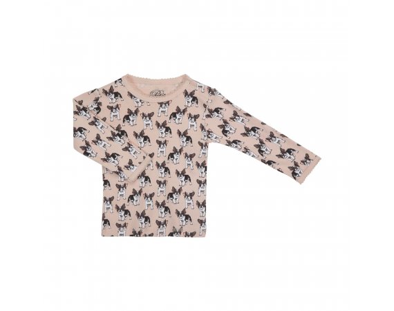 Sød langærmet t-shirt fra Petit By Sofie Schnoor i lys rosa med print af små franske bulldogs