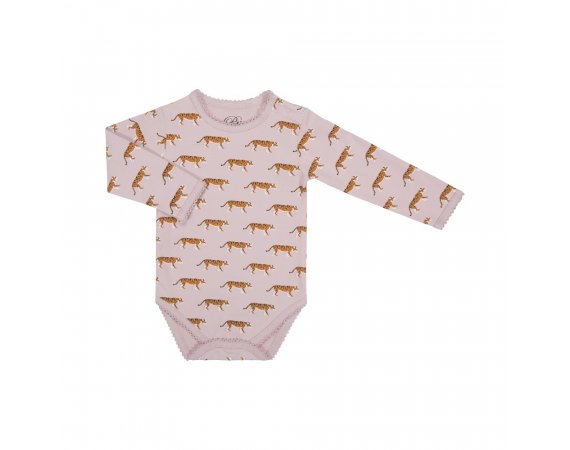 Flot langærmet body fra Petit by Sofie Schnoor i rosa med blonder og tigerprint