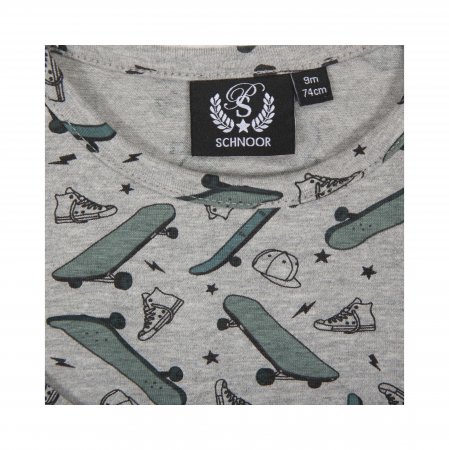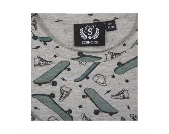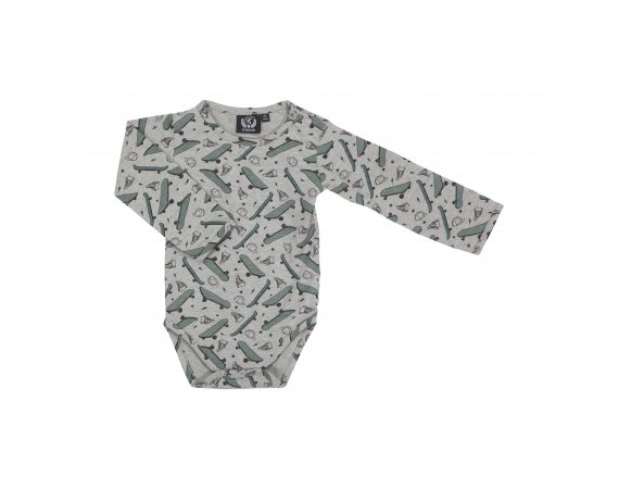 Basic langærmet Petit by Sofie Schnoor body i lys grøn med skater print