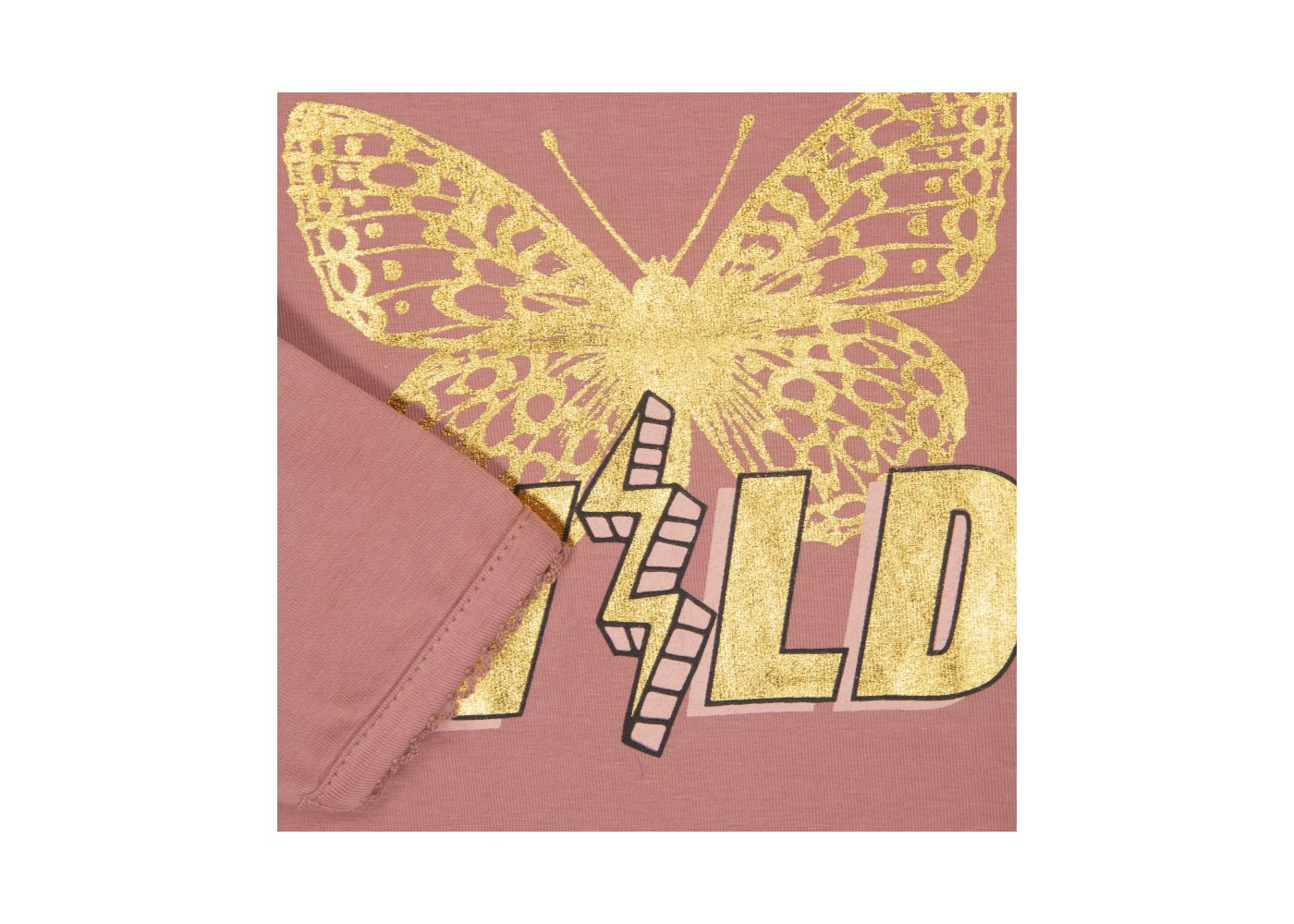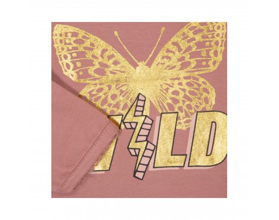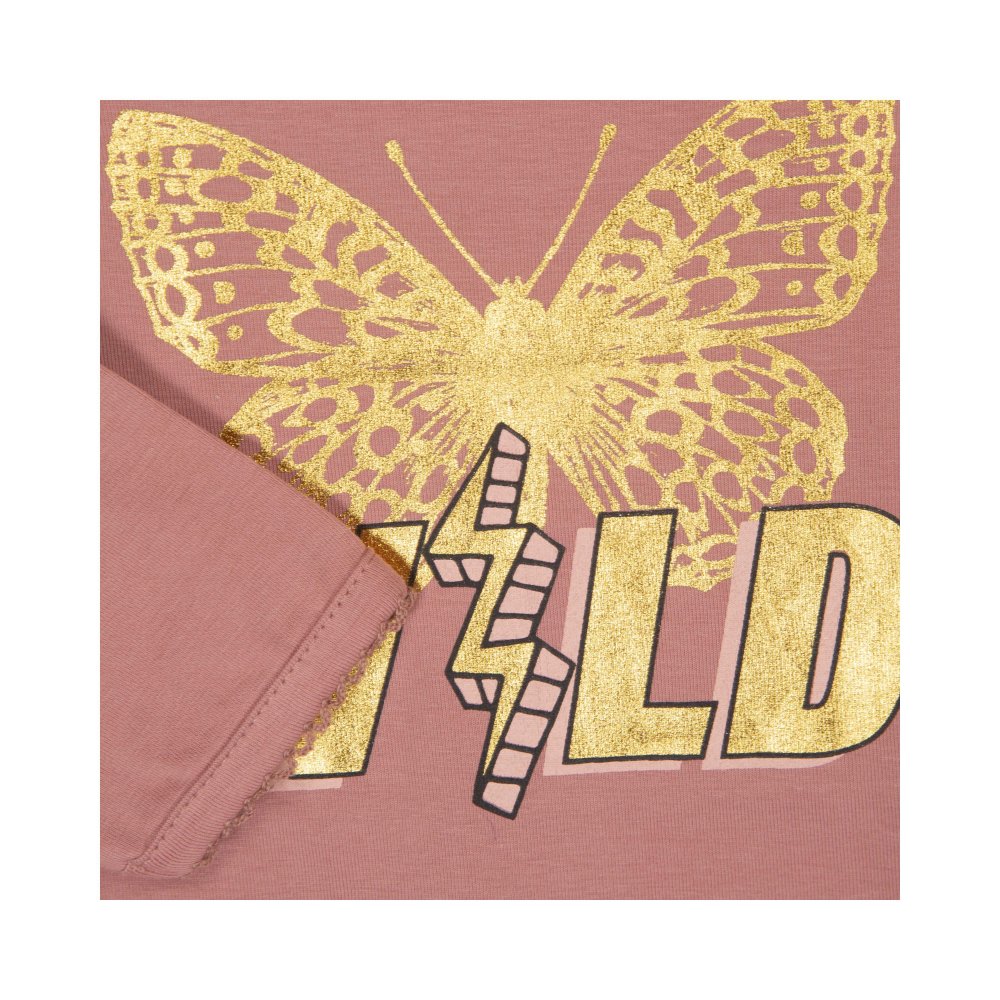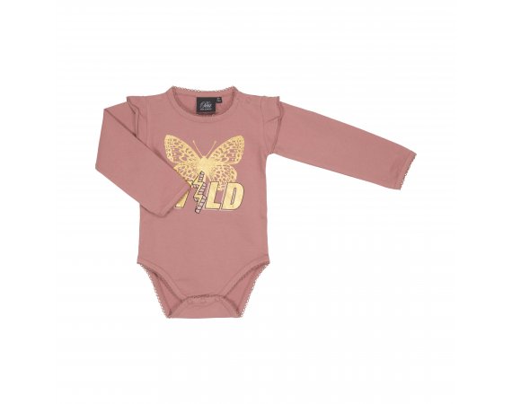 Basic langærmet Petit by Sofie Schnoor body i rosa med sommerfugl og flot guld skrift