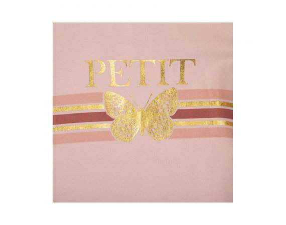 Basic langærmet Petit by Sofie Schnoor body i rosa med sommerfugl og flot guld print