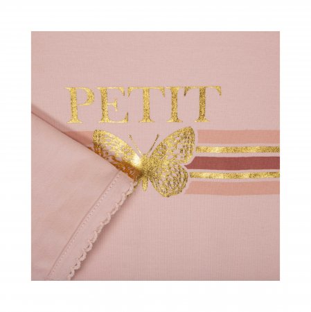 Super smart langærmet t-shirt fra Petit by Sofie Schnoor i en flot rosa med fint guld print foran