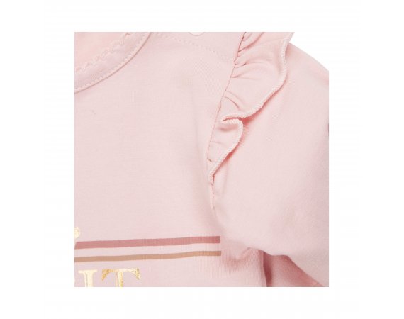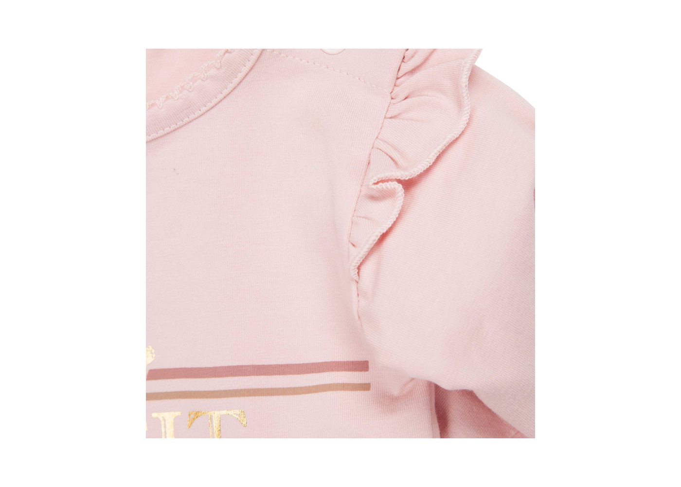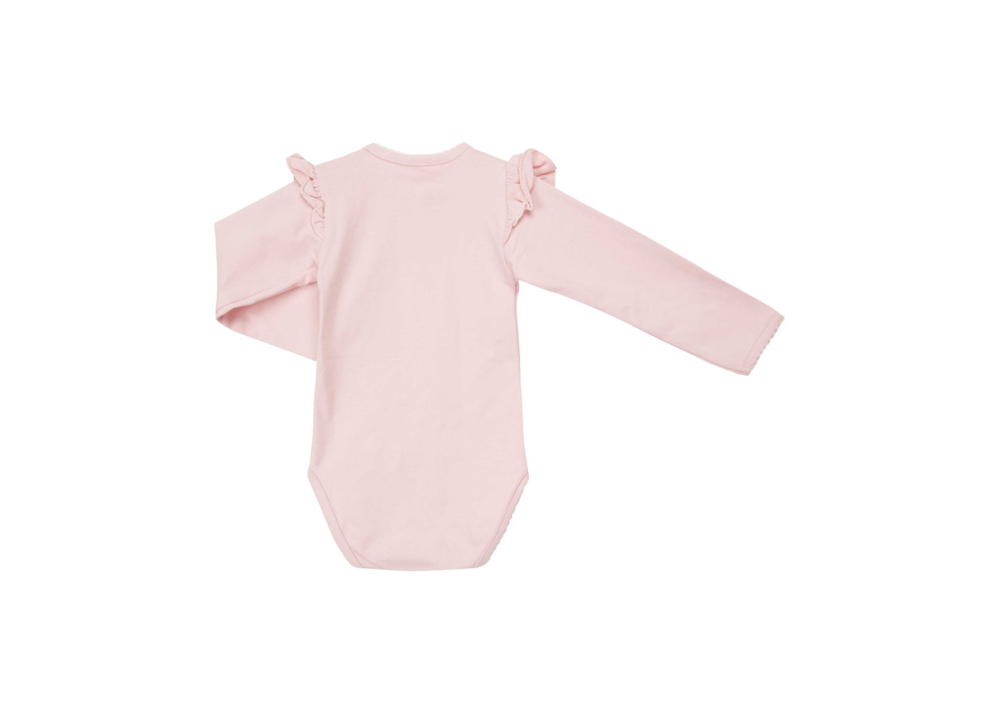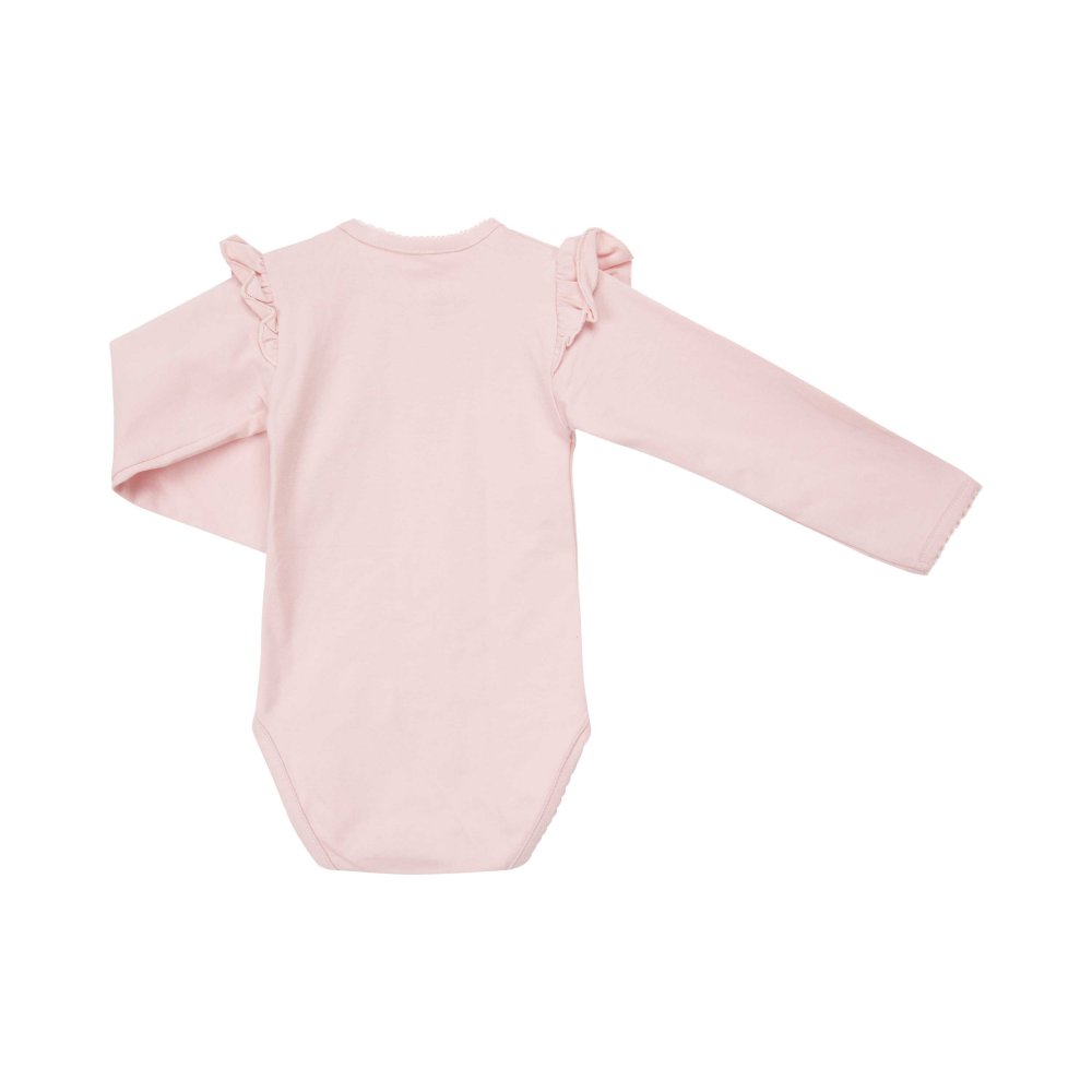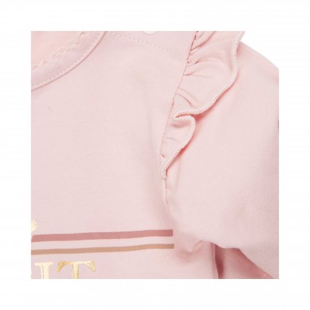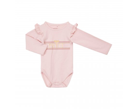 Yndig body med lange ærmer og guld print foranBody med flæsedetaljer på skuldre og smal kant ved alle åbninger med flotte blondedetaljer.