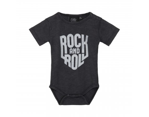 Sød sortmeleret body med korte ærmer og frisk print på fronten