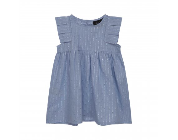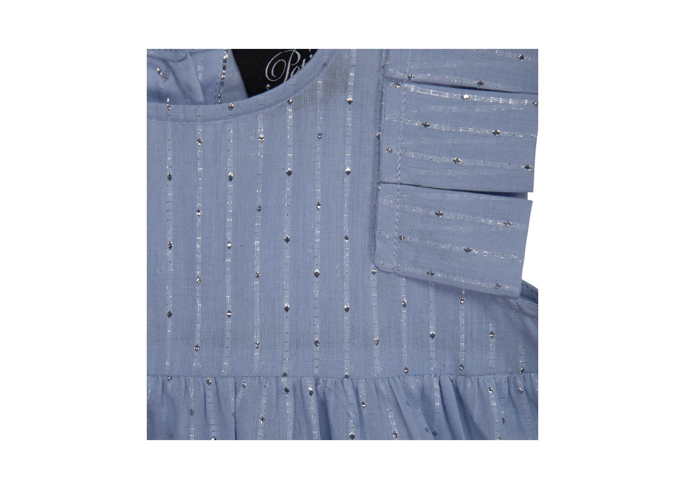 Sød og let sommer sommer kjole i lyseblå og med sølv striber