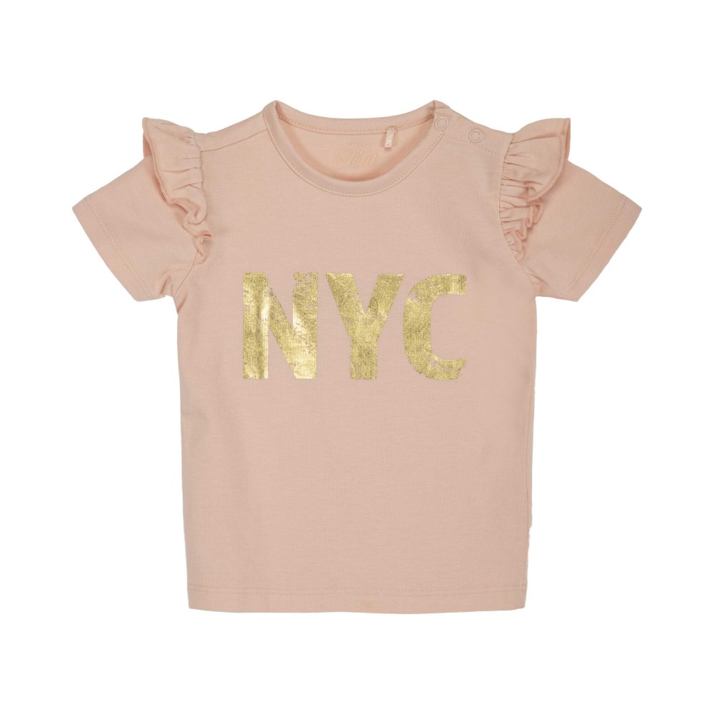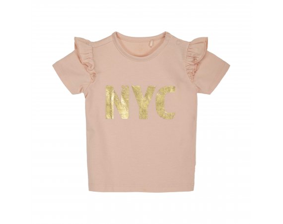 Sød t-shirt med korte ærmer og NYC guld printSkøn t-shirt med flotte flæse detaljer på skuldre.