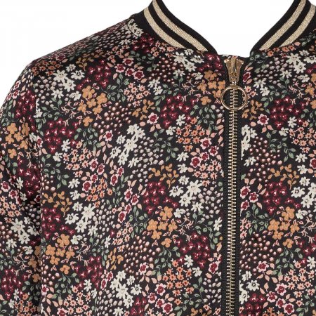 Sej bomber Jakke fra Petit by Sofie Schnoor med blomsterprint, lynlås og stribet elastik i liv og ærmerJakken har en gennemgående lynlås samt et tyndt sort inderfoer.