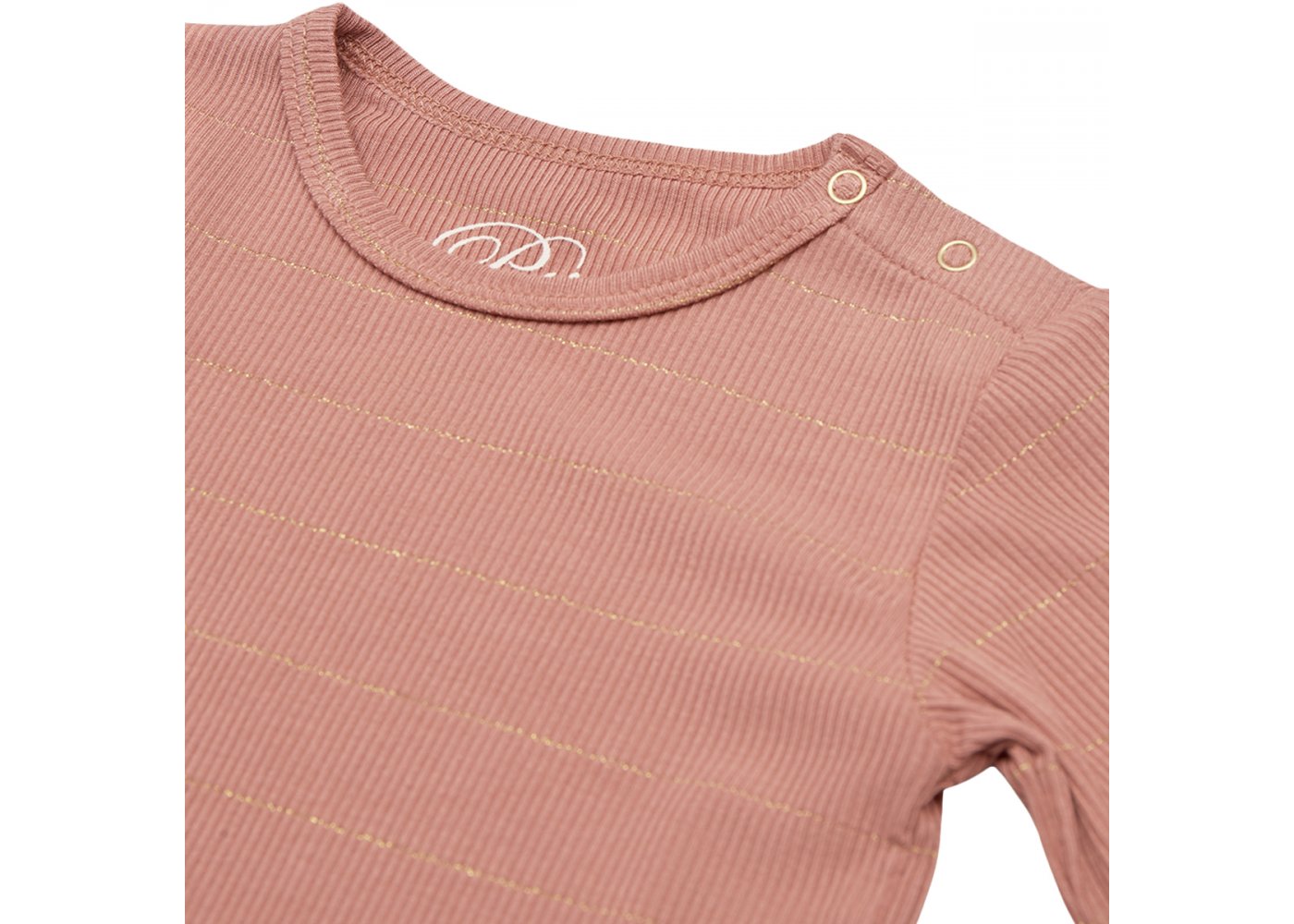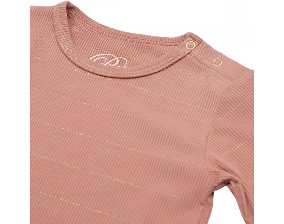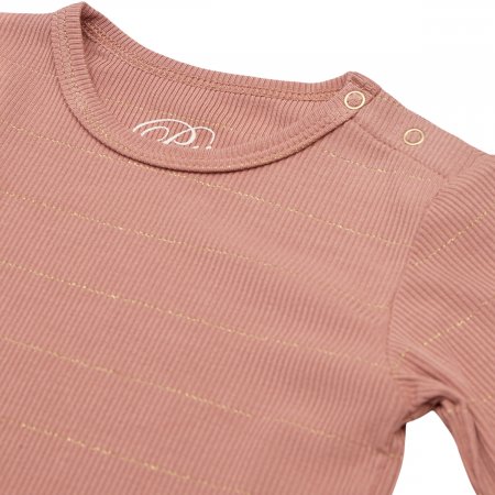 Sød body med lange ærmer og flot strukturmønster med ultra tynde guldstreger.