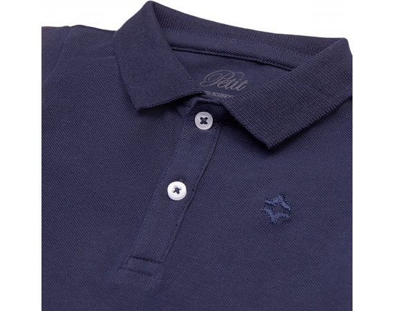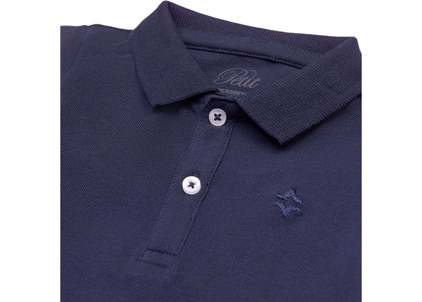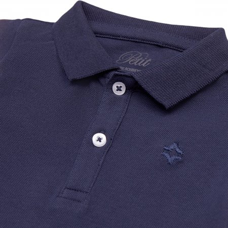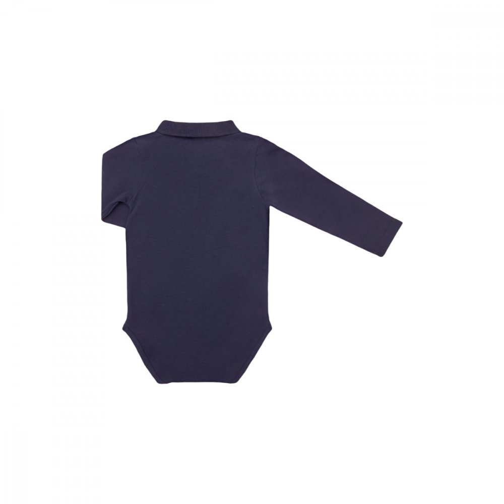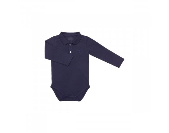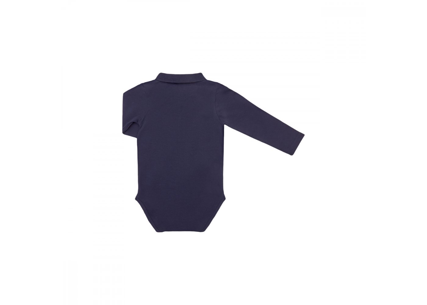Lækker langærmet body i mørkeblå og med flot stolpelukning på fronten. Bodyen har knapper, en fin klassisk krave og trykknapper imellem ben. Tekstil: 96% bomuld, 4% elastan Maskinvask 40°