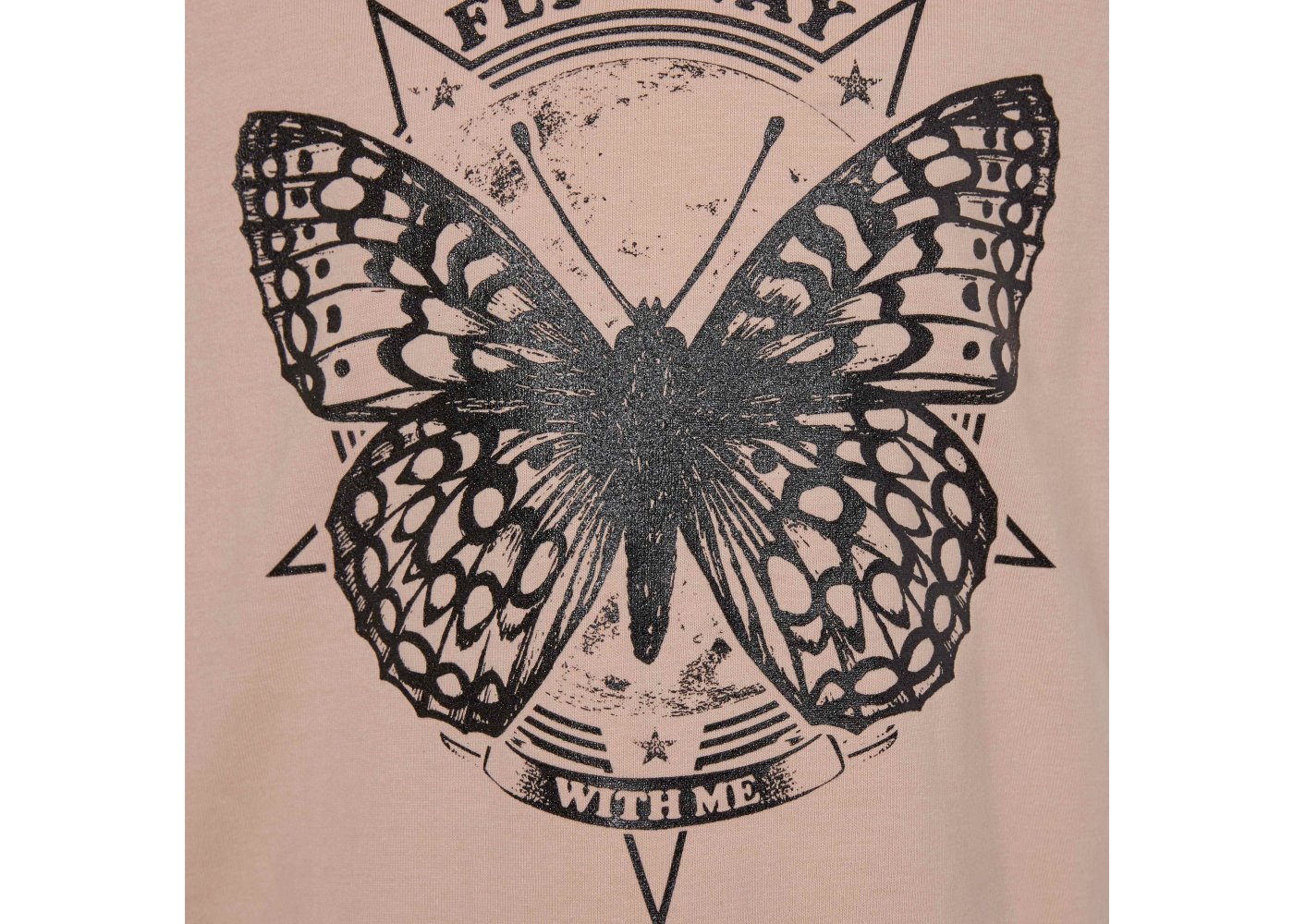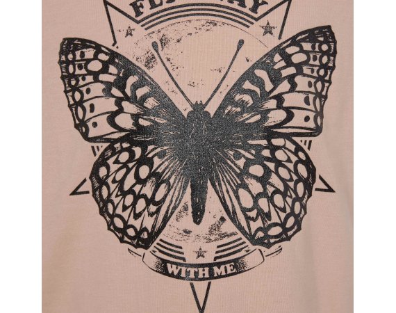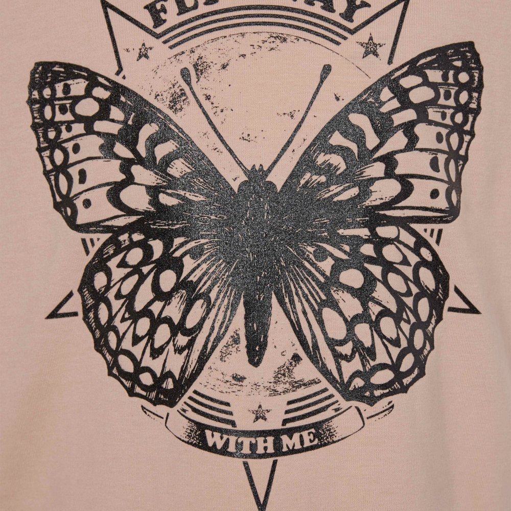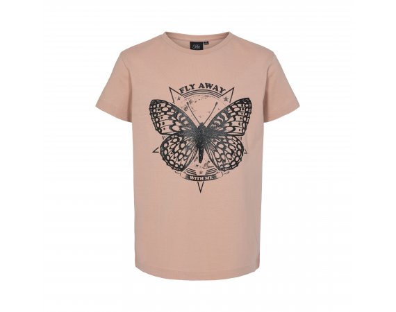 T-shirten har rund halsudskæring, et flot sommerfugle print foran og er ensfarvet bag på.