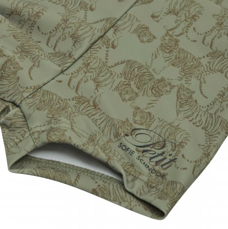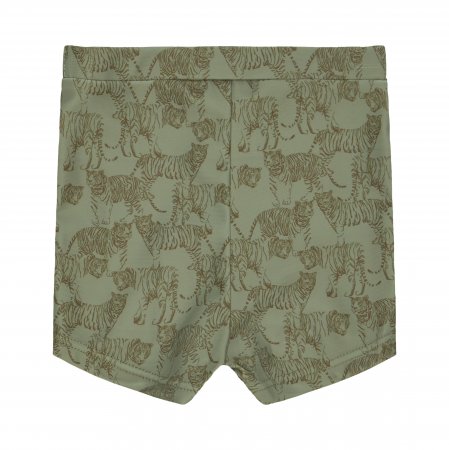 Smarte badebukser i grøn farve med farlige tiger print fra Petit by Sofie SchnoorBadeshortsene har elastik i livet og er fremstillet af et strækbart polyester materiale.
