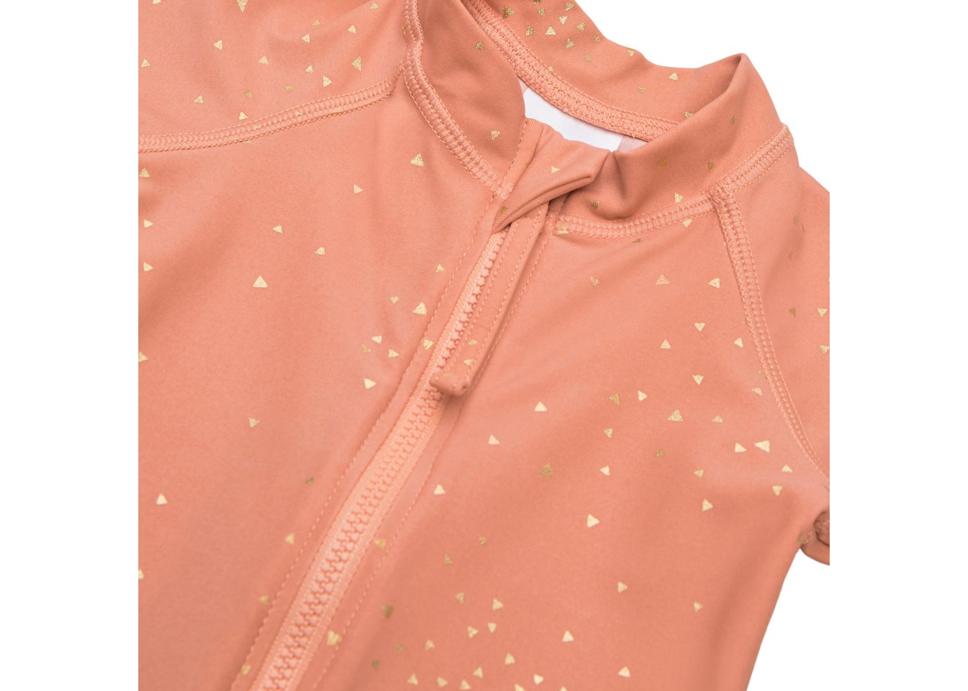 Super sej badedragt i rosa farve med små guld trekanter fra Petit by Sofie Schnoor