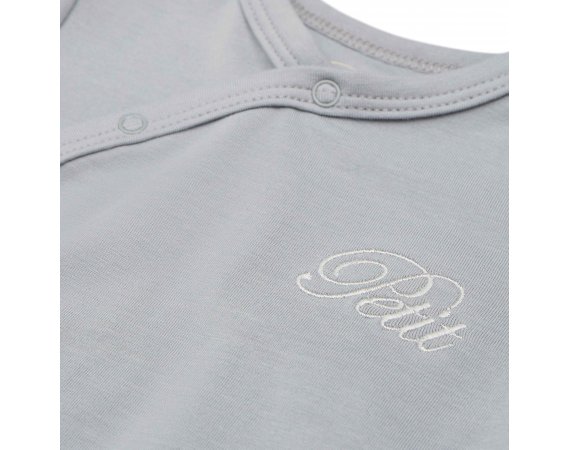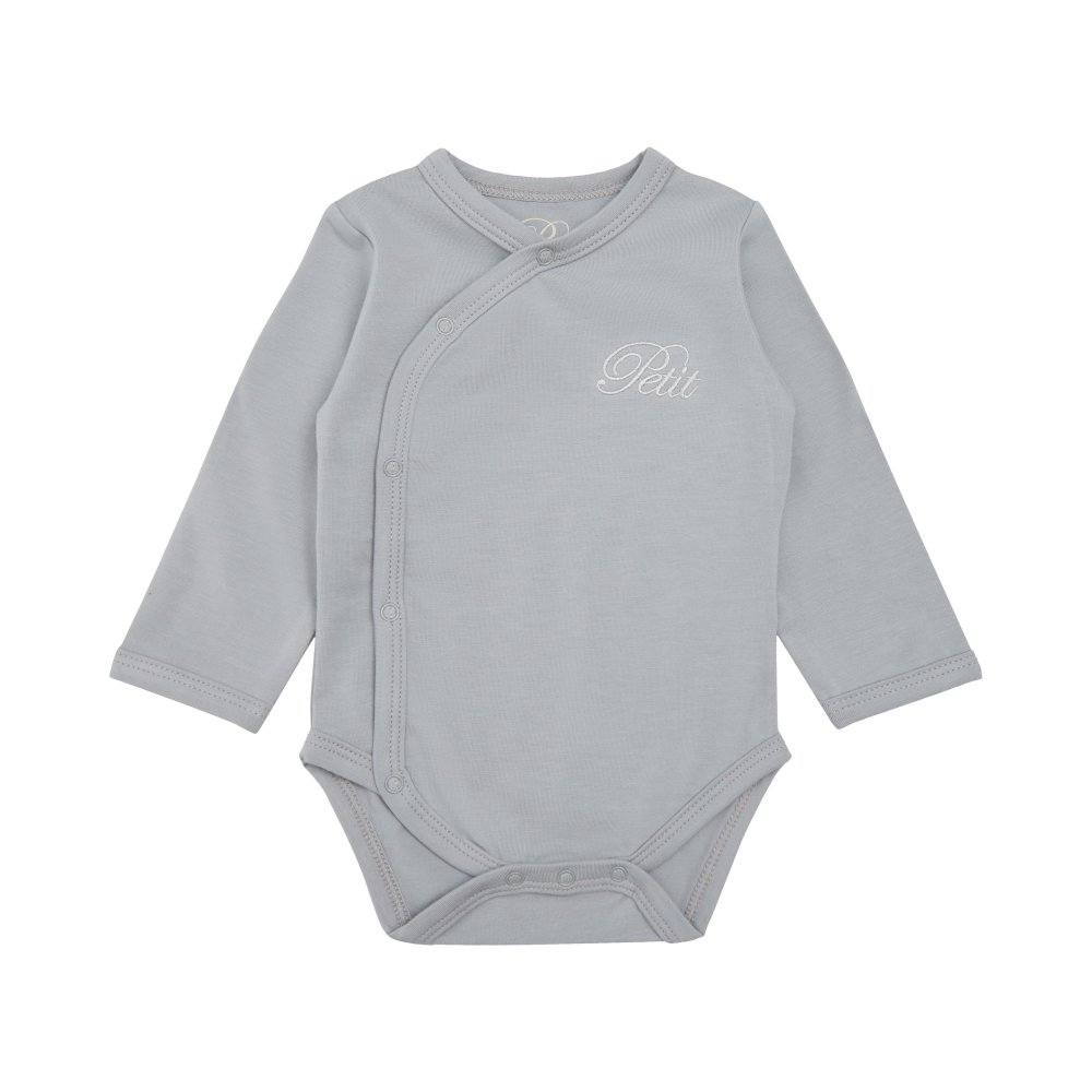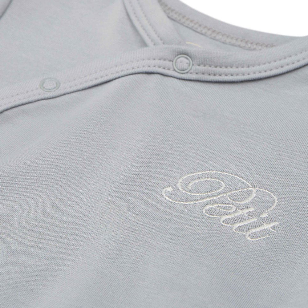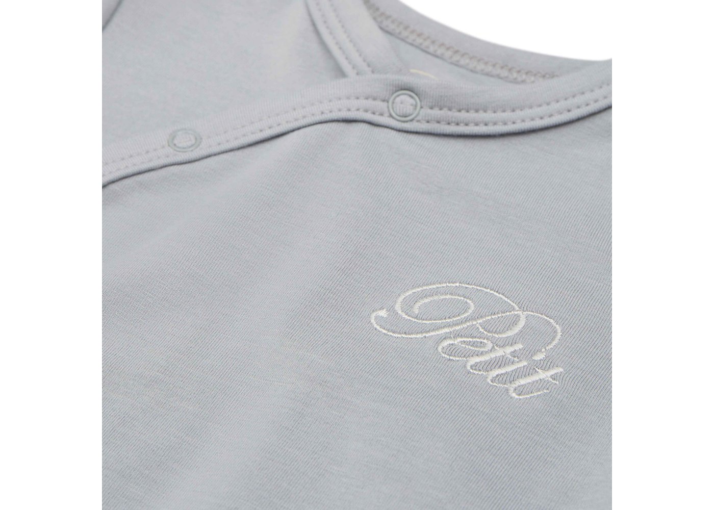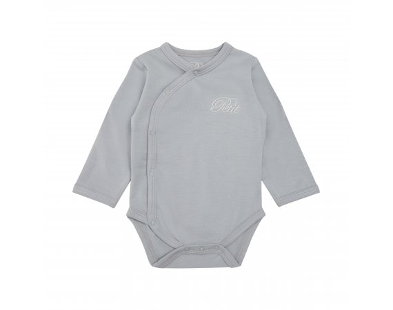 Sød blå body med lange ærmer fra Petit by Sofie Schnoor.Bodyen har fine smalle ribkanter i alle åbninger. Den lukkes foran og imellem ben med trykknapper.