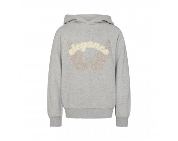 Smart grå sweatshirt med hætte og fint guldprint og tekst foran fra Petit by Sofie Schnoor.