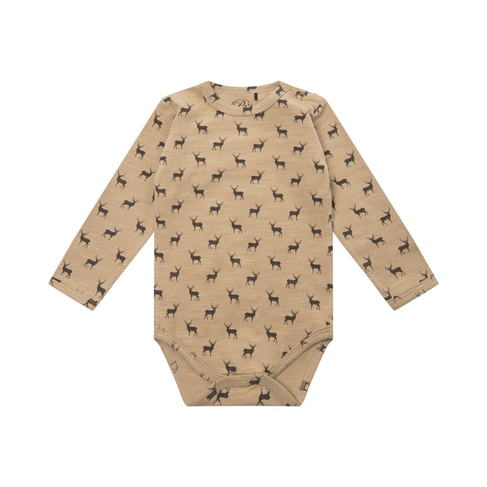 Smart body i camel fra Petit By Sofie Schnoor med flotte kronhjort motiver.