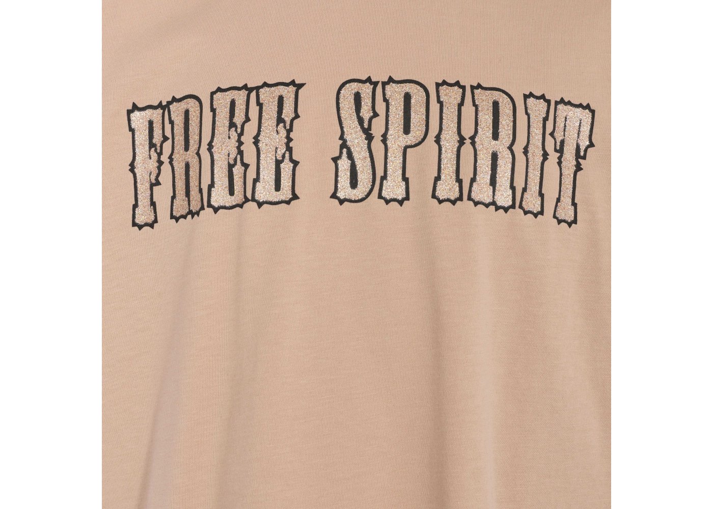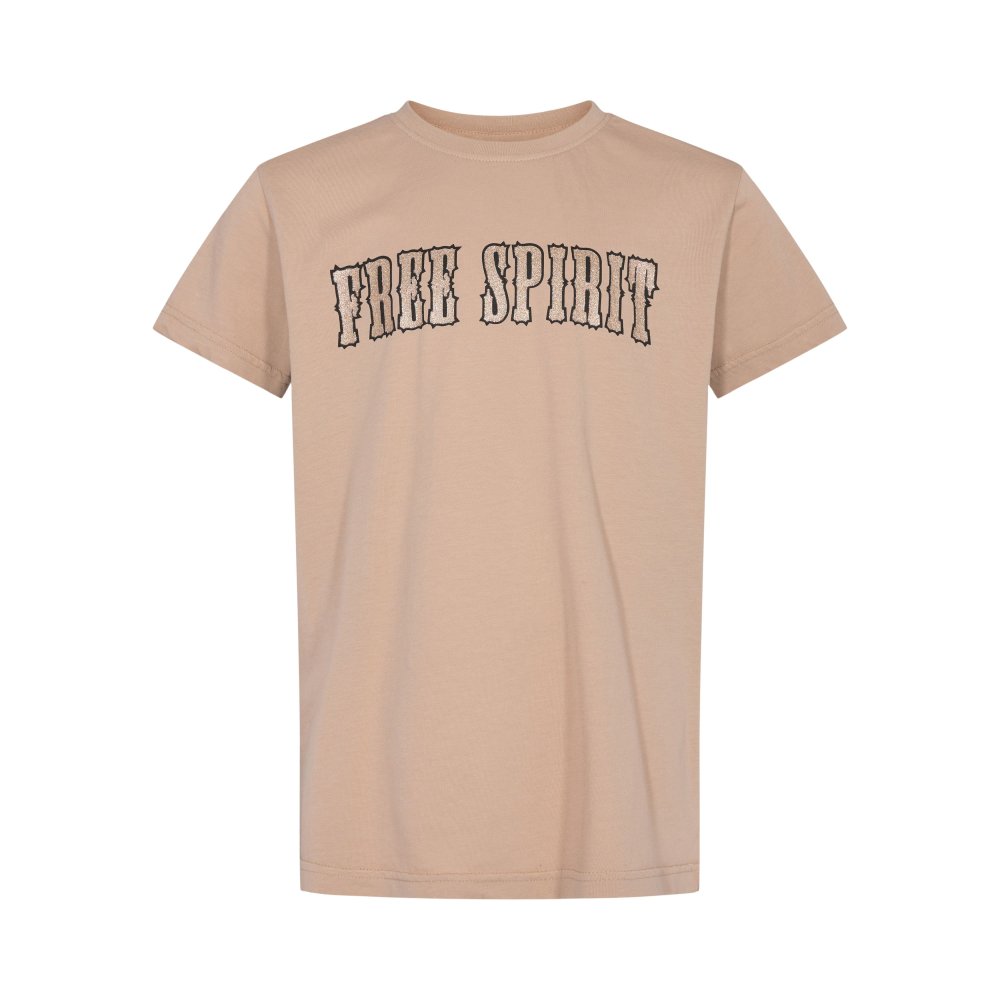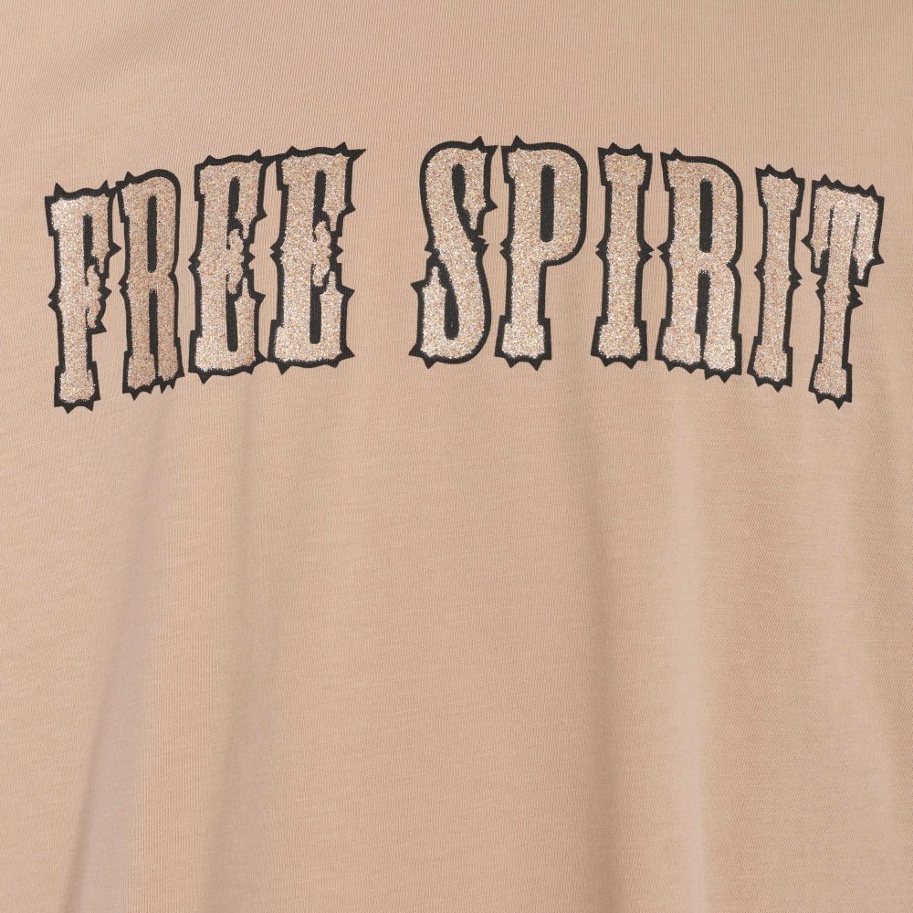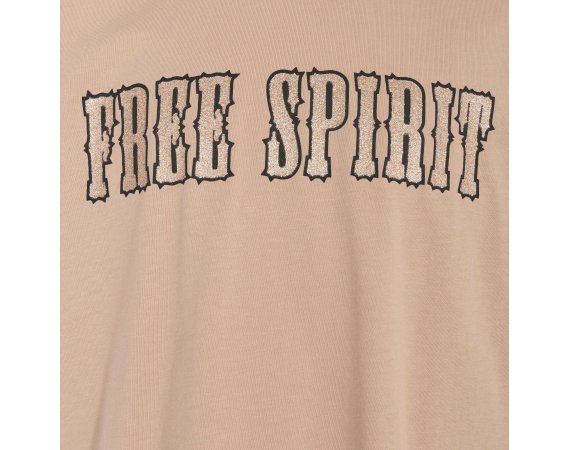T-shirten har en rund halsudskæring, korte ærmer og et flot glimmer print foran.