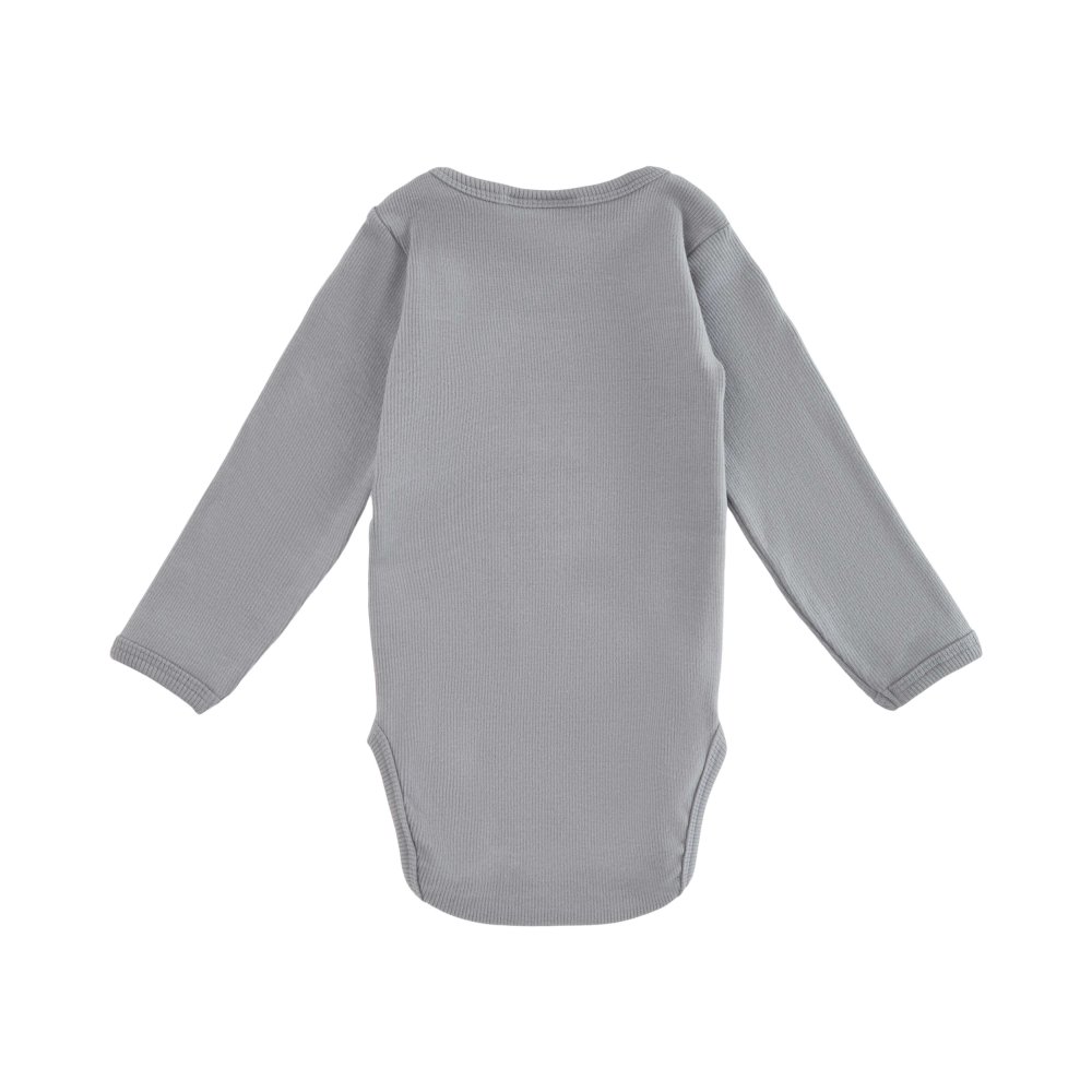 Bodyen har en fast kant i halsudskæring og imellem ben. Den lukkes med trykknapper på venstre skulder og imellem ben og er fremstillet i en lækker blød bomuld.