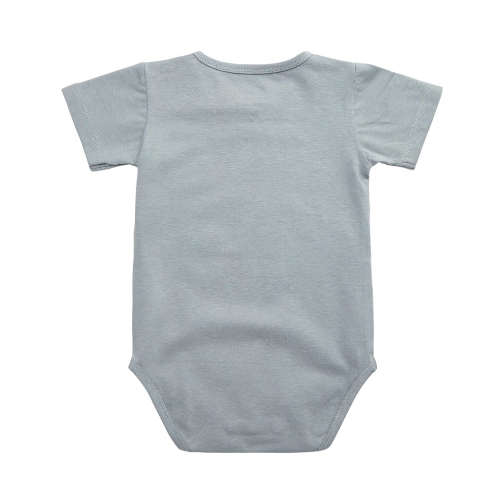 Bodyen er kantet med en smal rib i halsåbning og imellem ben, og åbnes med praktiske trykknapper ved venstre skulder og imellem ben.