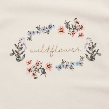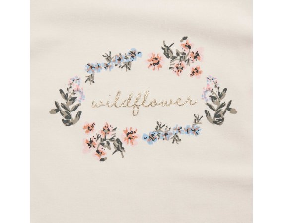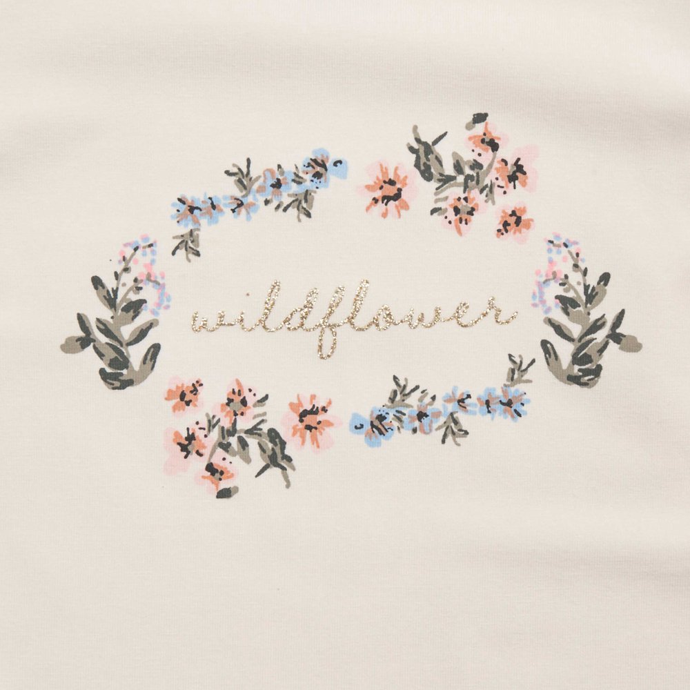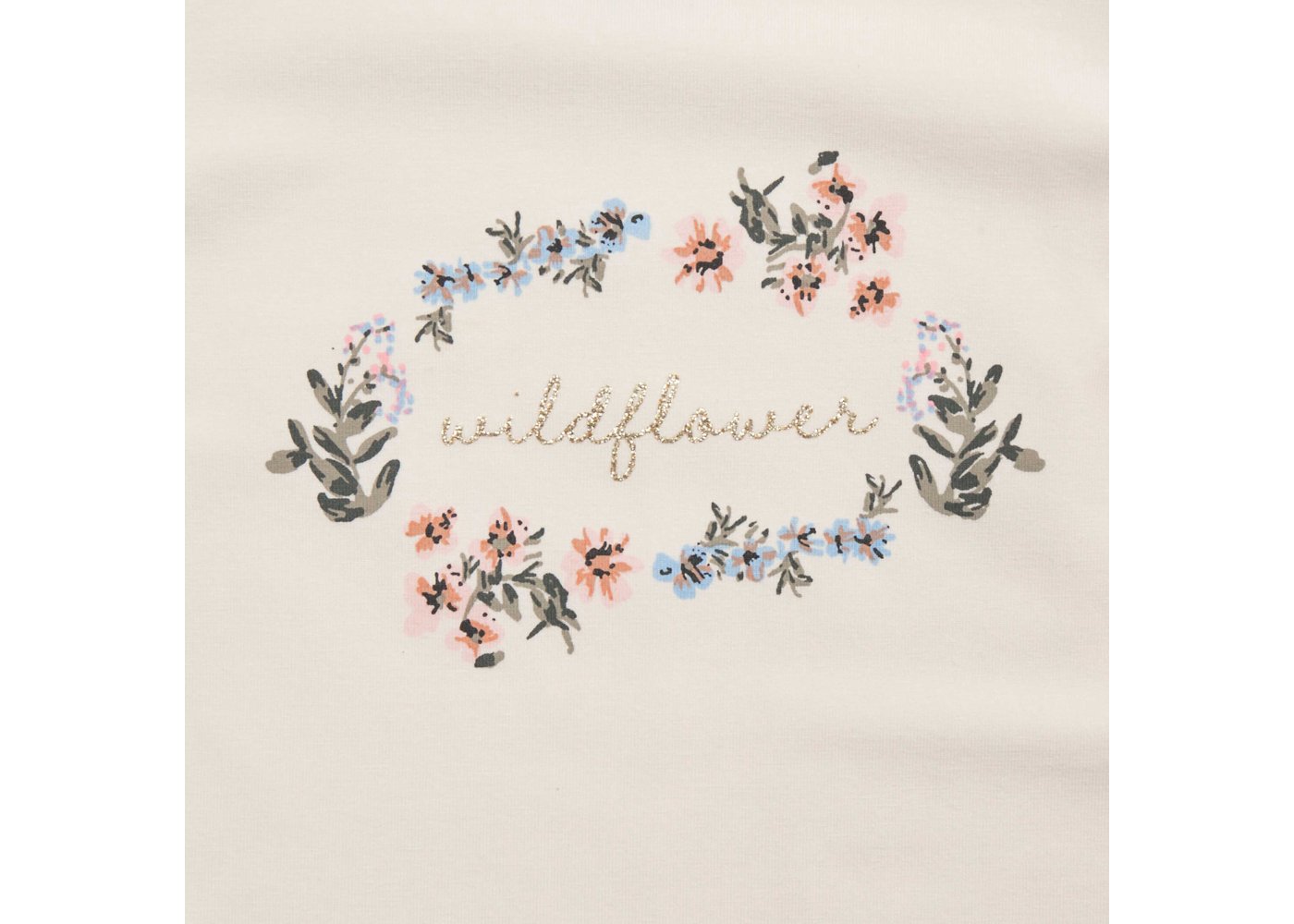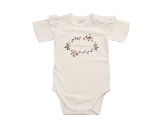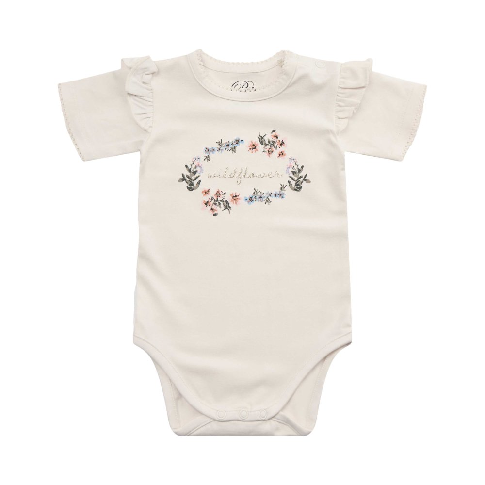 Flot kortærmet body i hvid med blomster ring foran fra Petit by Sofie Schnoor.