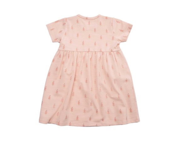 Kjolen har korte ærmer og et fint rynket skørt. Den lukkes med trykknapper på venstre skulder. Tekstil: 96% Bomuld, 4% Elastan