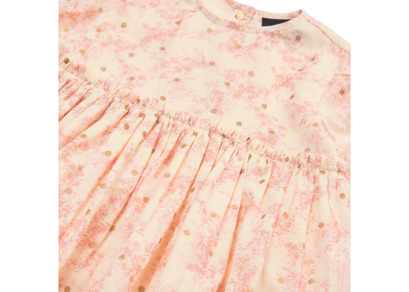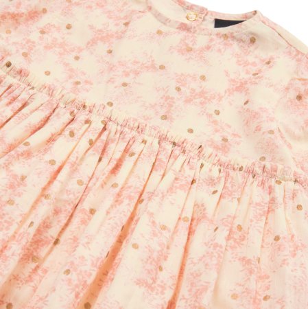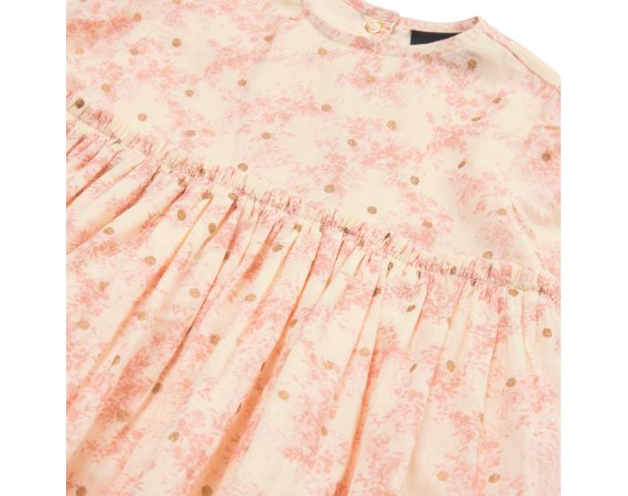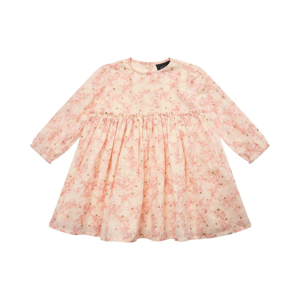 Smuk kjole med blomster og guldprikker fra Petit by Sofie Schnoor.