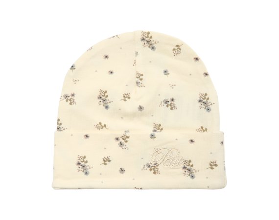 Sød hue med fine blå blomster fra Petit by Sofie Schnoor.Tekstil: 46% Bomuld, 48% Modal, 6% Elastan