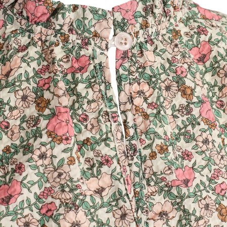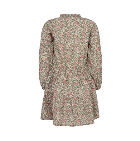 Fin langærmet kjole i beige med blomsterprint i rosa og grønne nuancer.